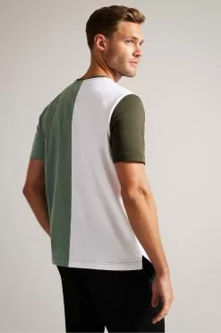 Ted Baker Green Ramin Green Short Sleeved Vertical Colour Block T-Shirt