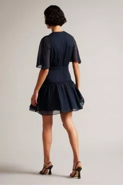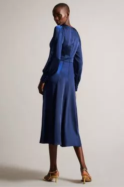 Ted Baker Blue Daniia Waisted Midi Dress With Blouson Sleeve