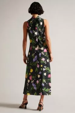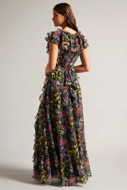 Ted Baker Adiie Black Frilled Sleeveless Maxi Dress With Tie Waist