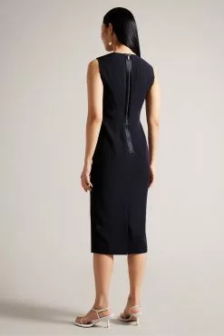 Ted Baker Blue Elissii Bodycon Midi Dress With Sheer Panelling