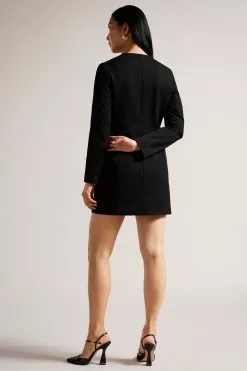 Ted Baker Faridda Black Printed Mini Dress With Puff Sleeves