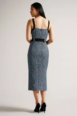 Ted Baker Dusky Pink Odinne Paneled Midi Slip Dress With Asymmetric Hem