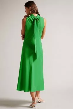 Ted Baker Green Mmilly Mid High Low Halter Dress With Integral Tie