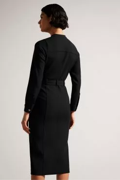 Ted Baker Hattei Black Belted Shirt Dress With Utility Detailing