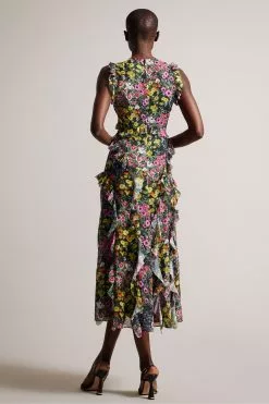 Ted Baker Iggiey Black 3/4 Length Sleeve Dress With Ruffled Skirt