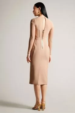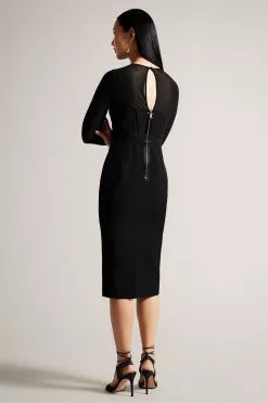 Ted Baker Josiaa Black Square Neck Military Detail Midi Dress