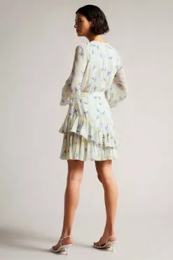 Ted Baker Sky Blue Suziiee Waisted Asymmetric Ruffles Mini Dress