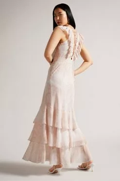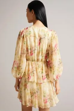 Ted Baker Tamziiy V-Neck Ggt Printed Tie Front Mini Brown Dress