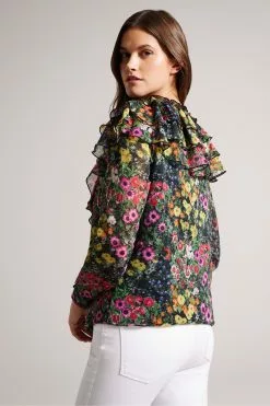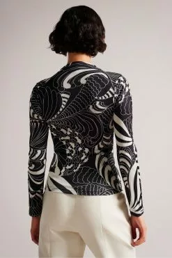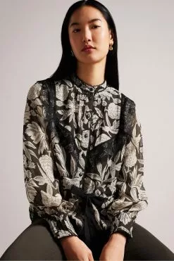 Ted Baker Alness Drawstring Waist Brown Blouse With Contrast Lace