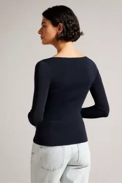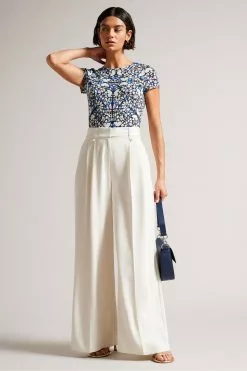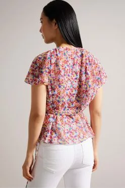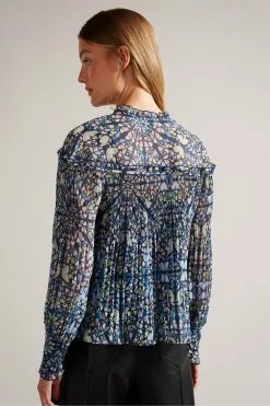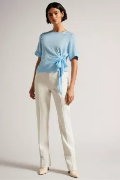 Ted Baker Blue Florrei Swing Blouse With Ruffle Detail And Neck Tie
