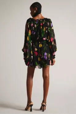 Ted Baker Brookii Black Ruffle Playsuit With Blouson Sleeves