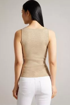 Ted Baker Gold Sharlee Knitted Fitted Vest With Metallic Thread