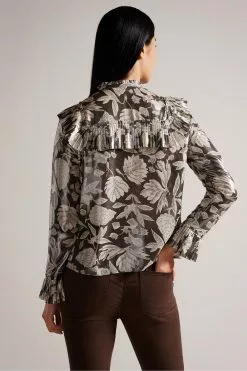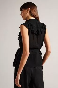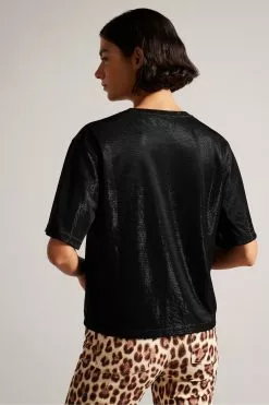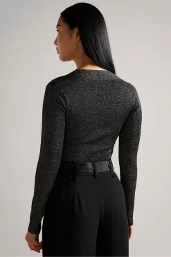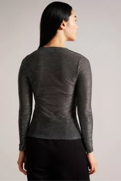 Ted Baker Genini Glitsy Black Long Sleeve Top With Gathering