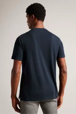 Ted Baker Zeppel Navy Blue Short Sleeve Cashmere Blend Regular T-Shirt