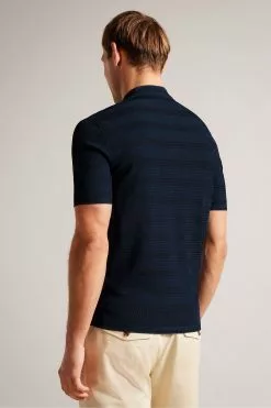 Ted Baker Blue Stortfo Short Sleeved Rayon Open Neck Polo Shirt
