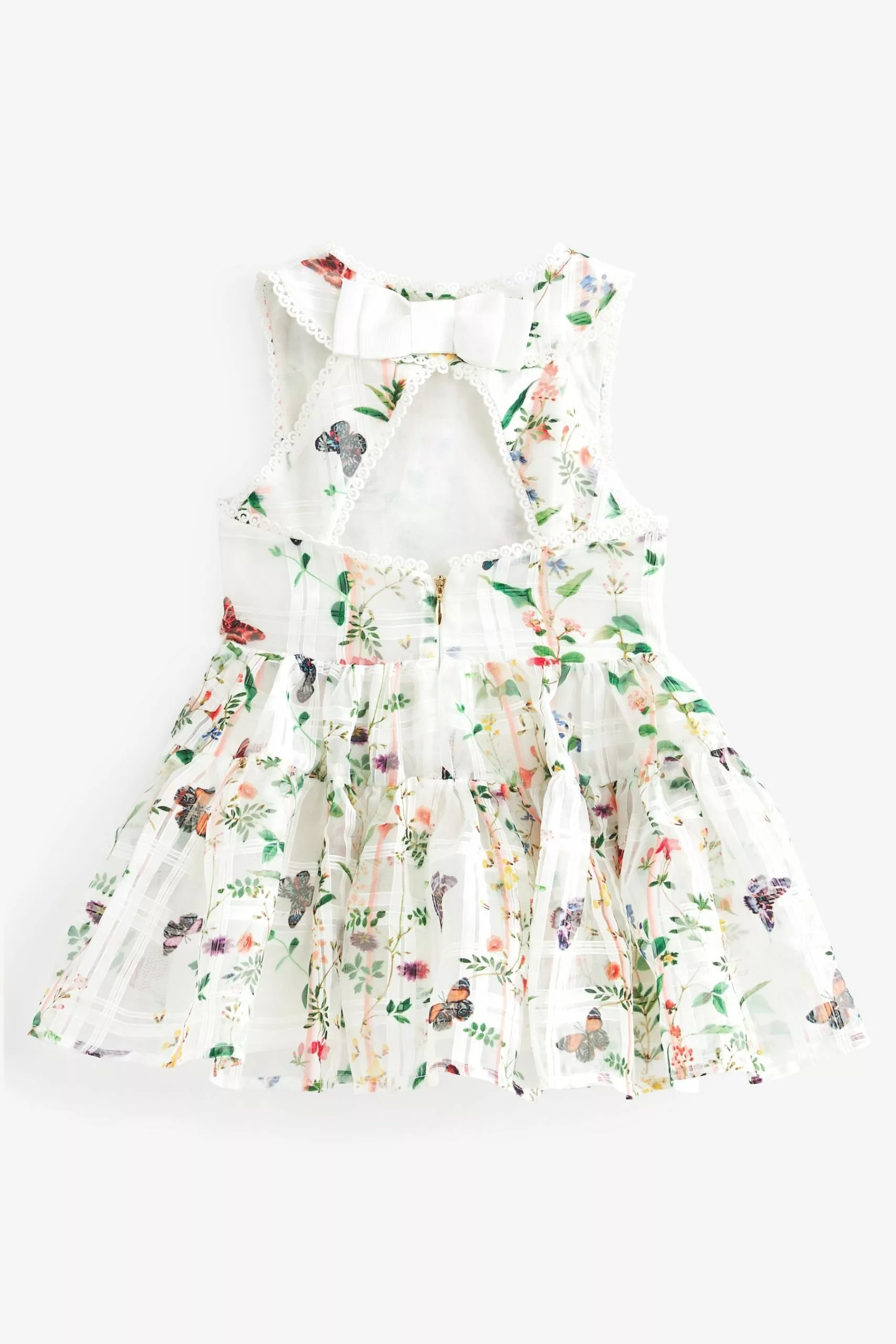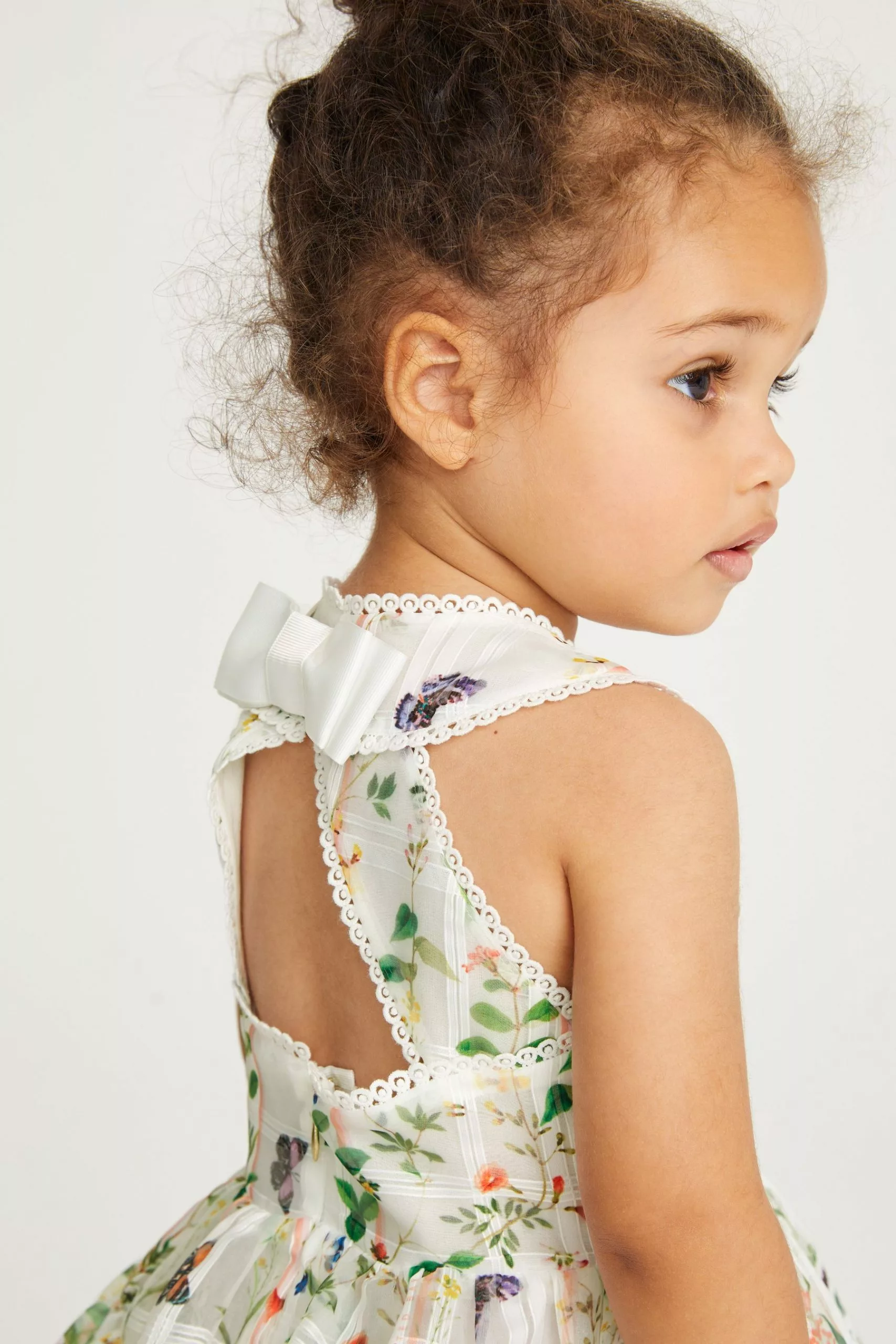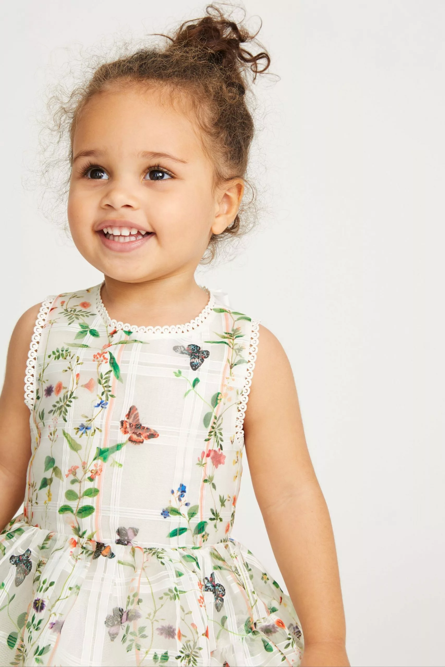 Take care of warm summer days in style with this adorable little dress from Baker by Ted Baker. Made for your little lady to enjoy, this pretty piece is crafted from soft polyester and it is covered in a delicate floral print with a scalloped trim and a cut out detail on the back complete with a bow. Dressed up or down, this dress will be a lovely addition to her wardrobe.