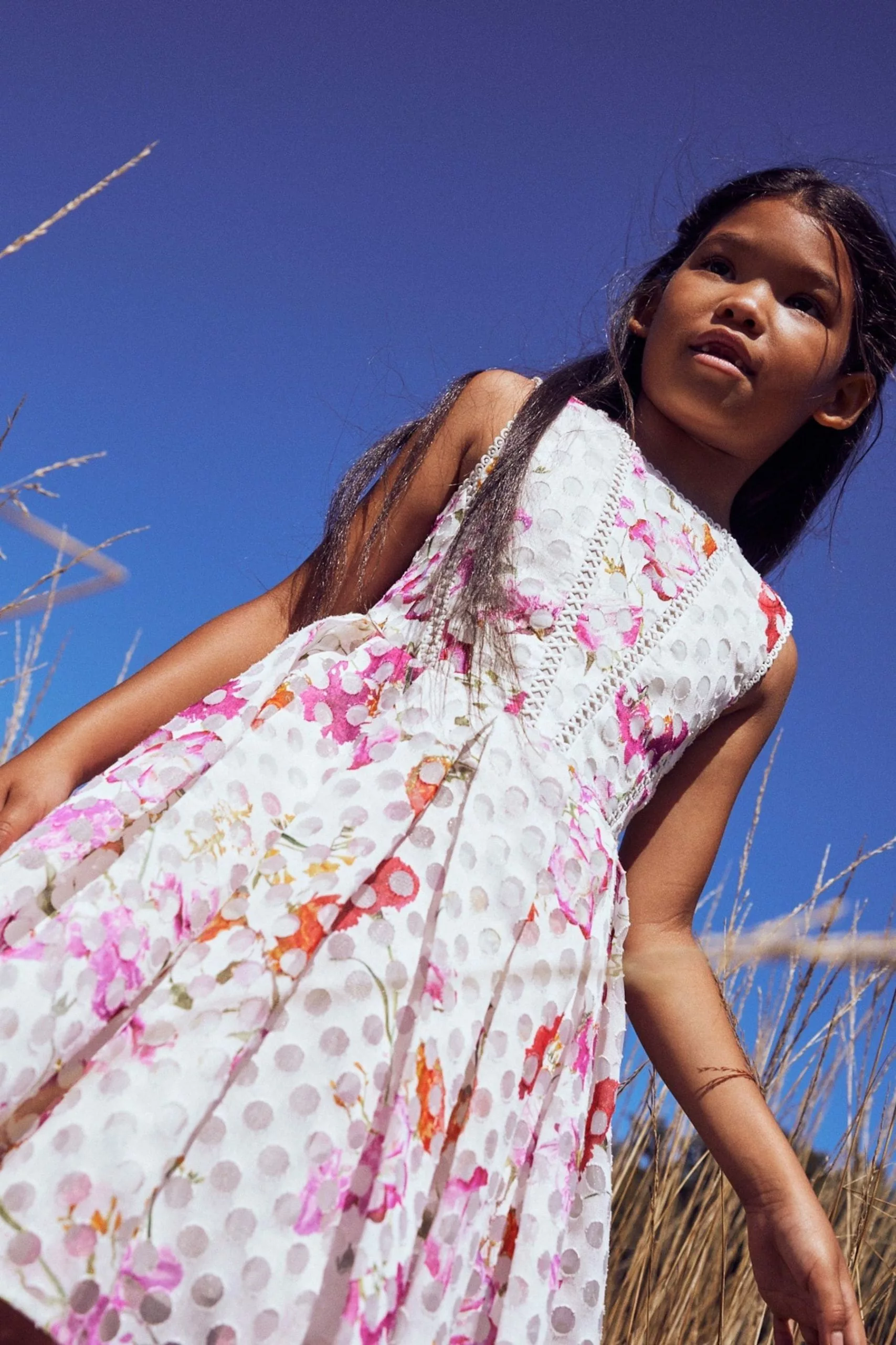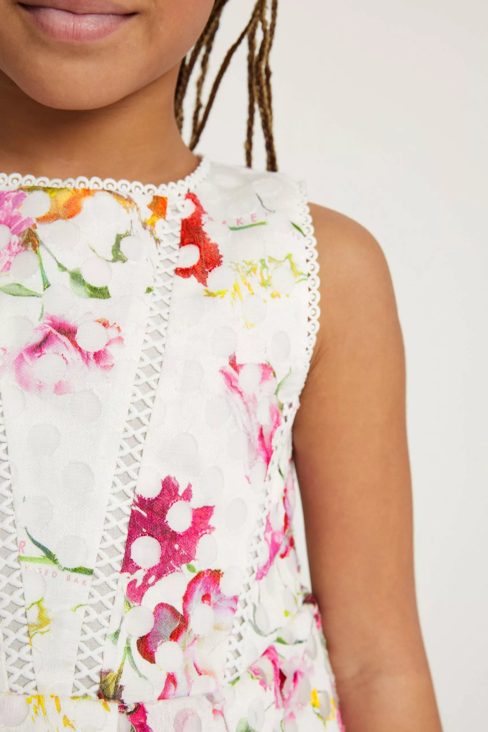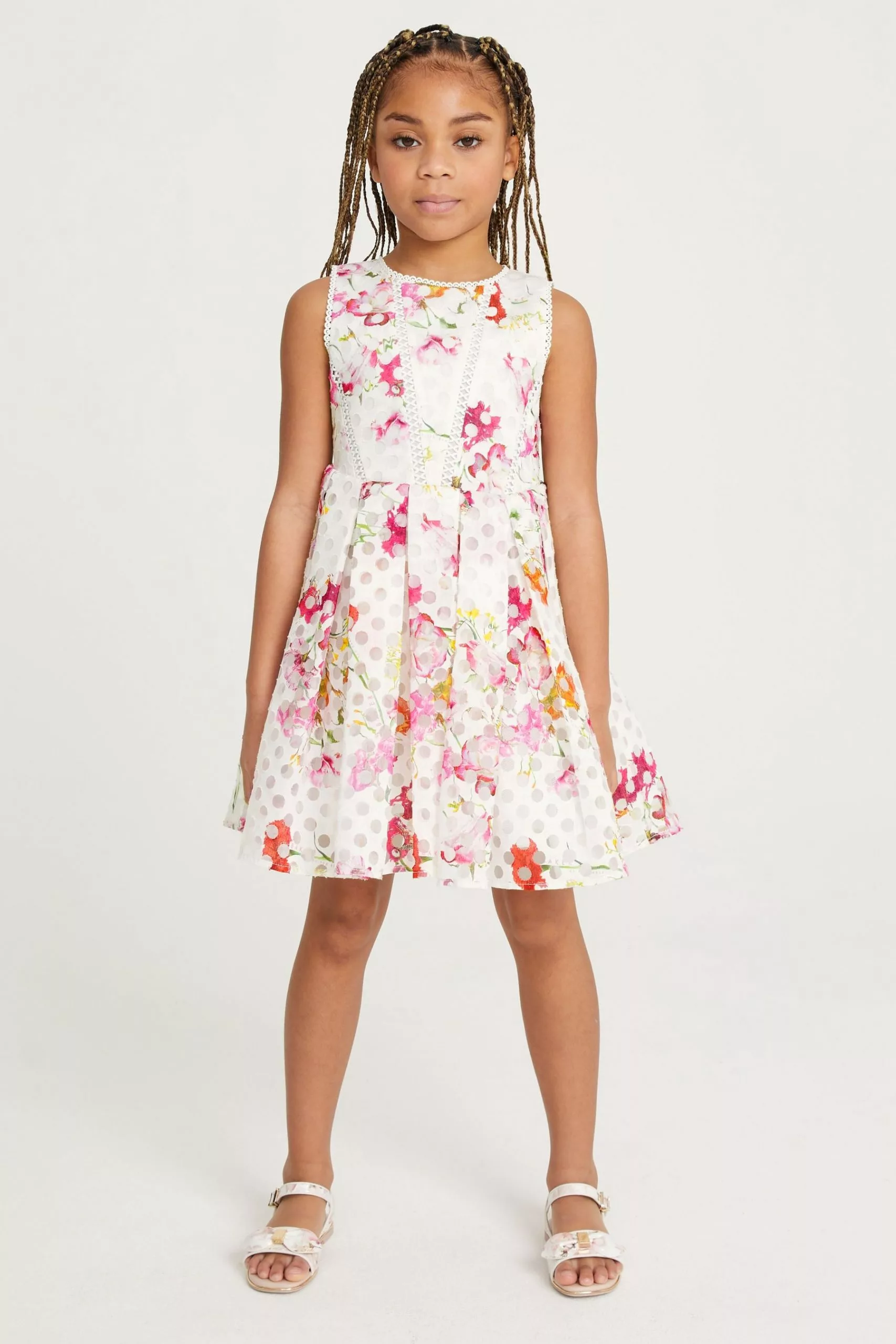 Bursting with pattern and colour, this dress from Baker by Ted Baker will be a charming addition to your little girl’s wardrobe. Perfect for special occasions, the floral and polka dot printed piece made from a soft viscose blend has a grid detailing on the bodice and a stunning pleated skirt.