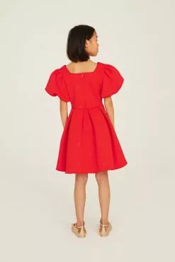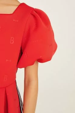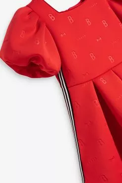 In a gorgeous scuba fabric, this statement-making dress from Baker by Ted Baker is designed with pretty puffball sleeves and signature Baker branding with side tape detailing. Perfect for twirling!