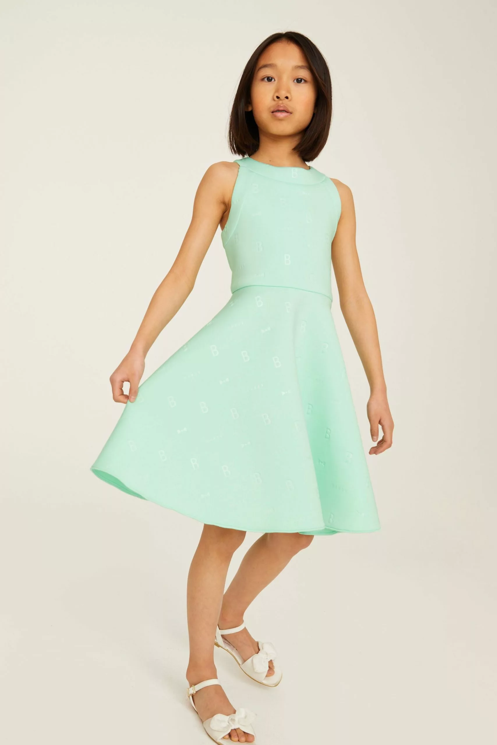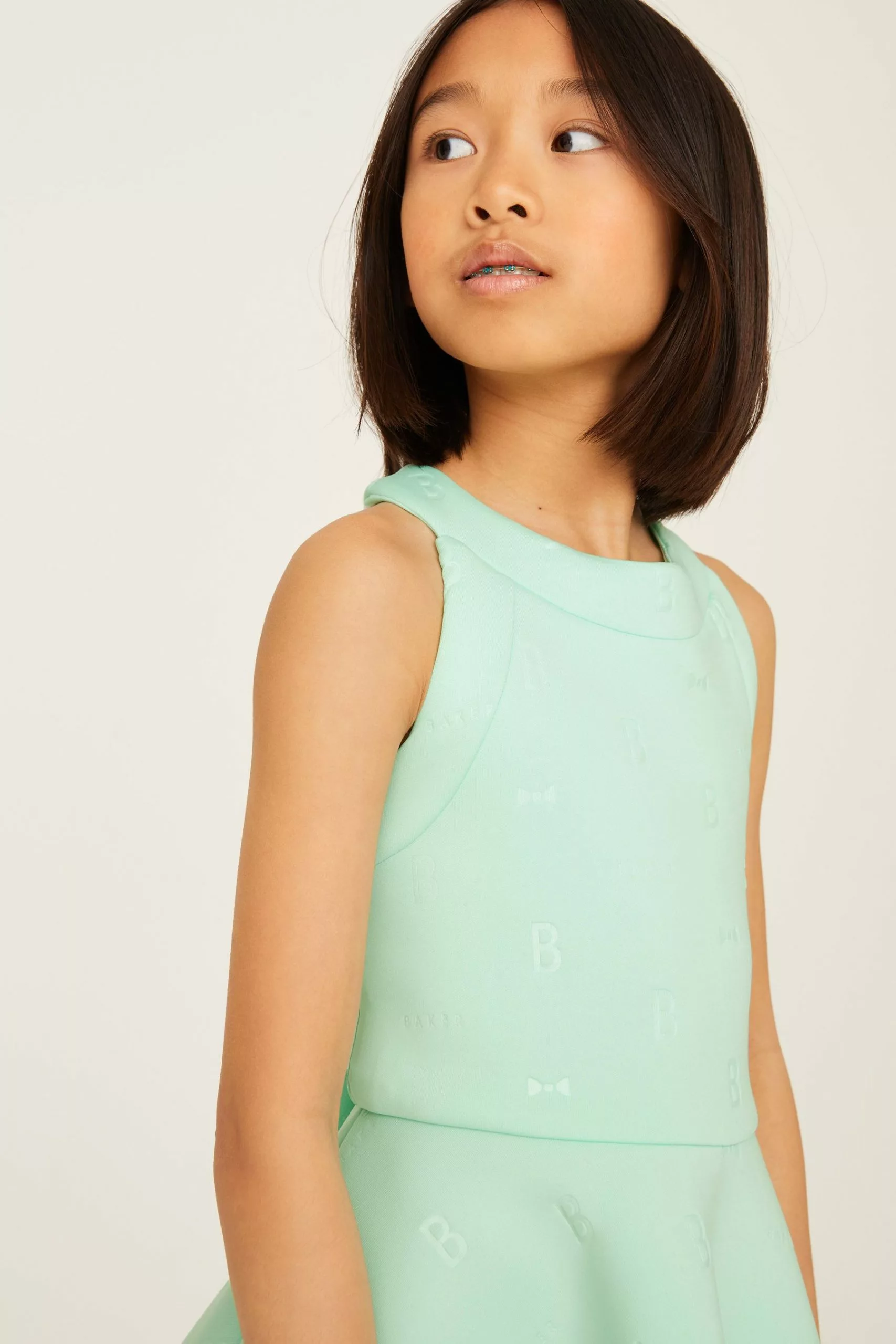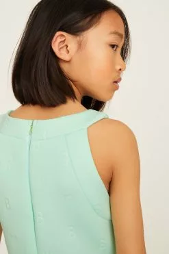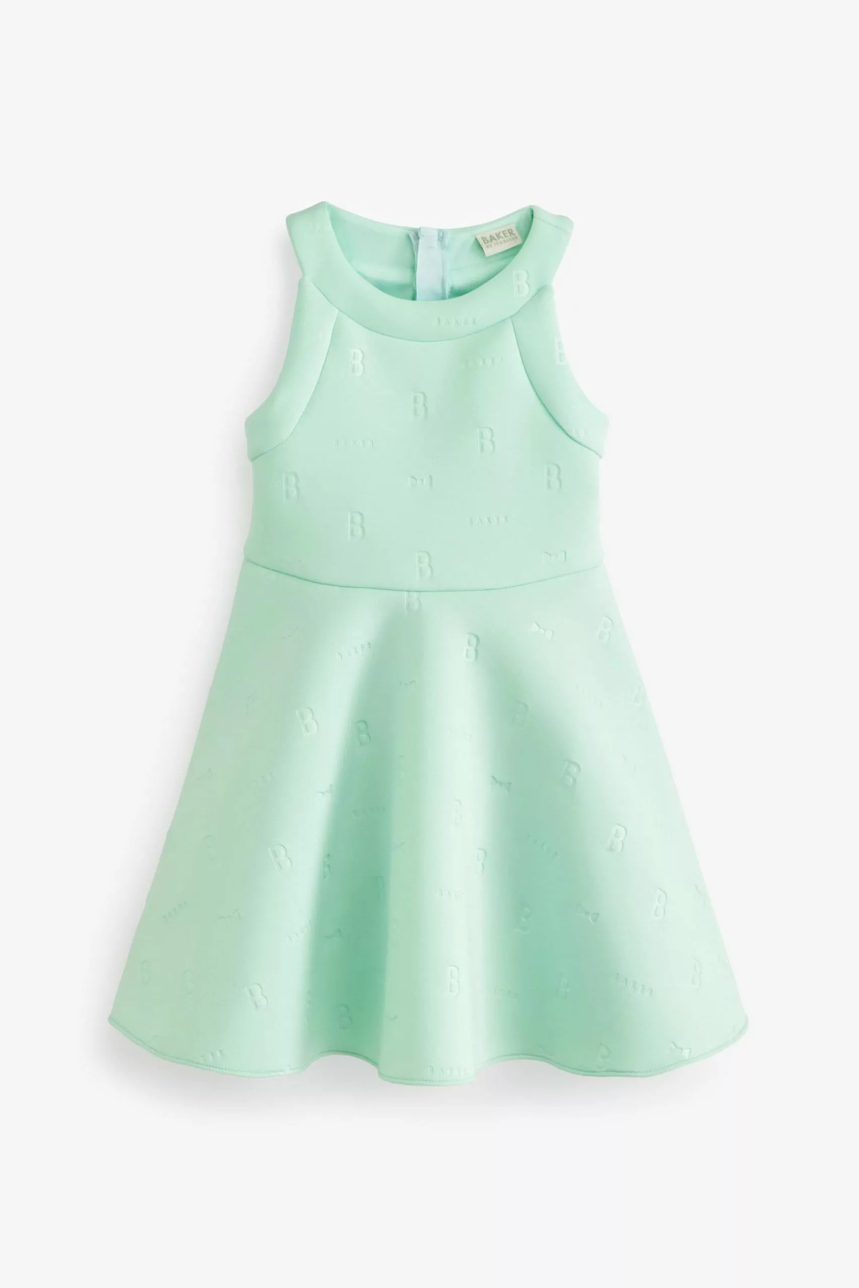 A beautiful dress for the summer from Baker by Ted Baker for your little girl to enjoy, The gorgeous halter neck silhouette is made with a scuba fabric in a sugary shade of lilac and it is covered with embossed branding. It is finely finished with a concealed zip fastening at the back to help with dressing.