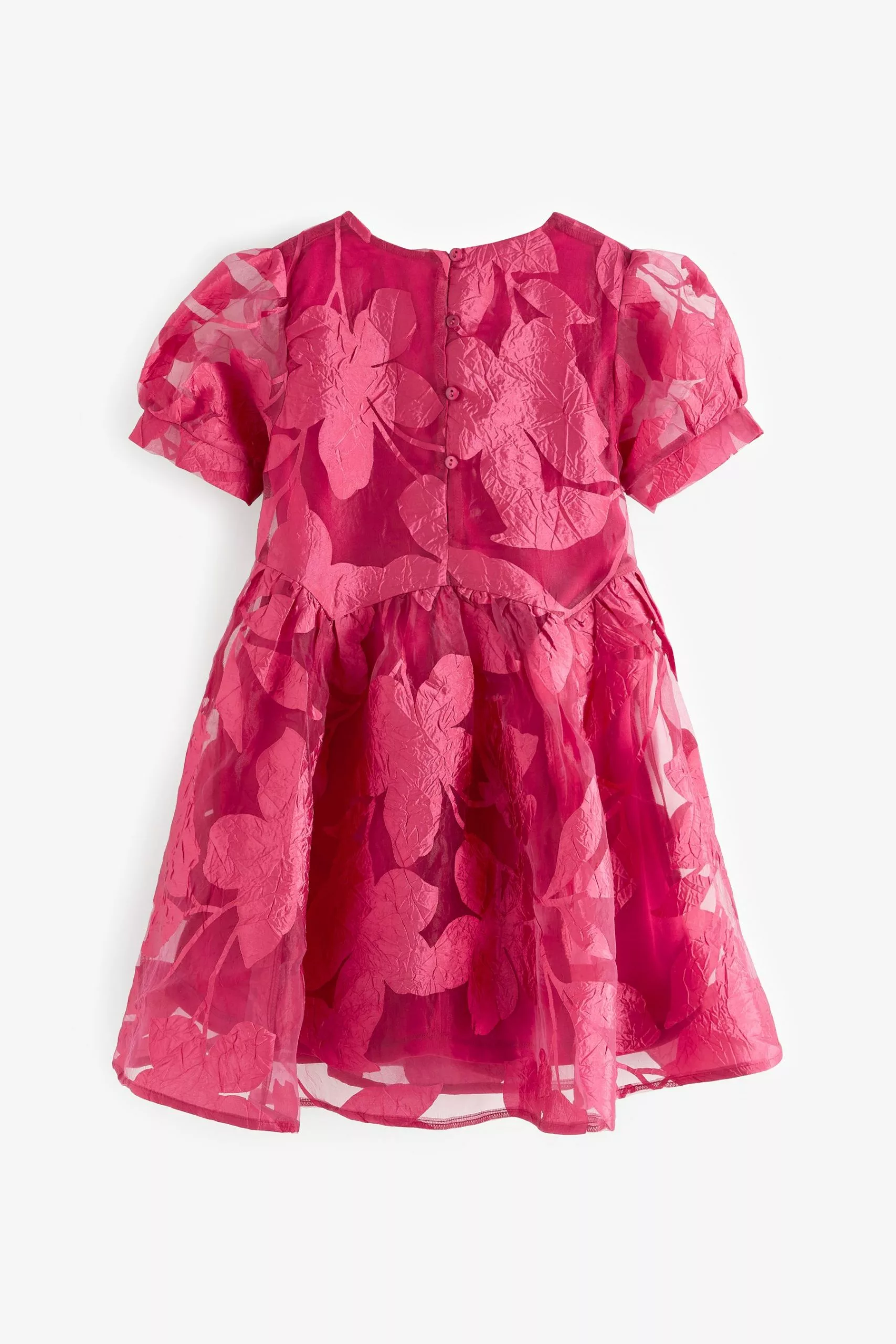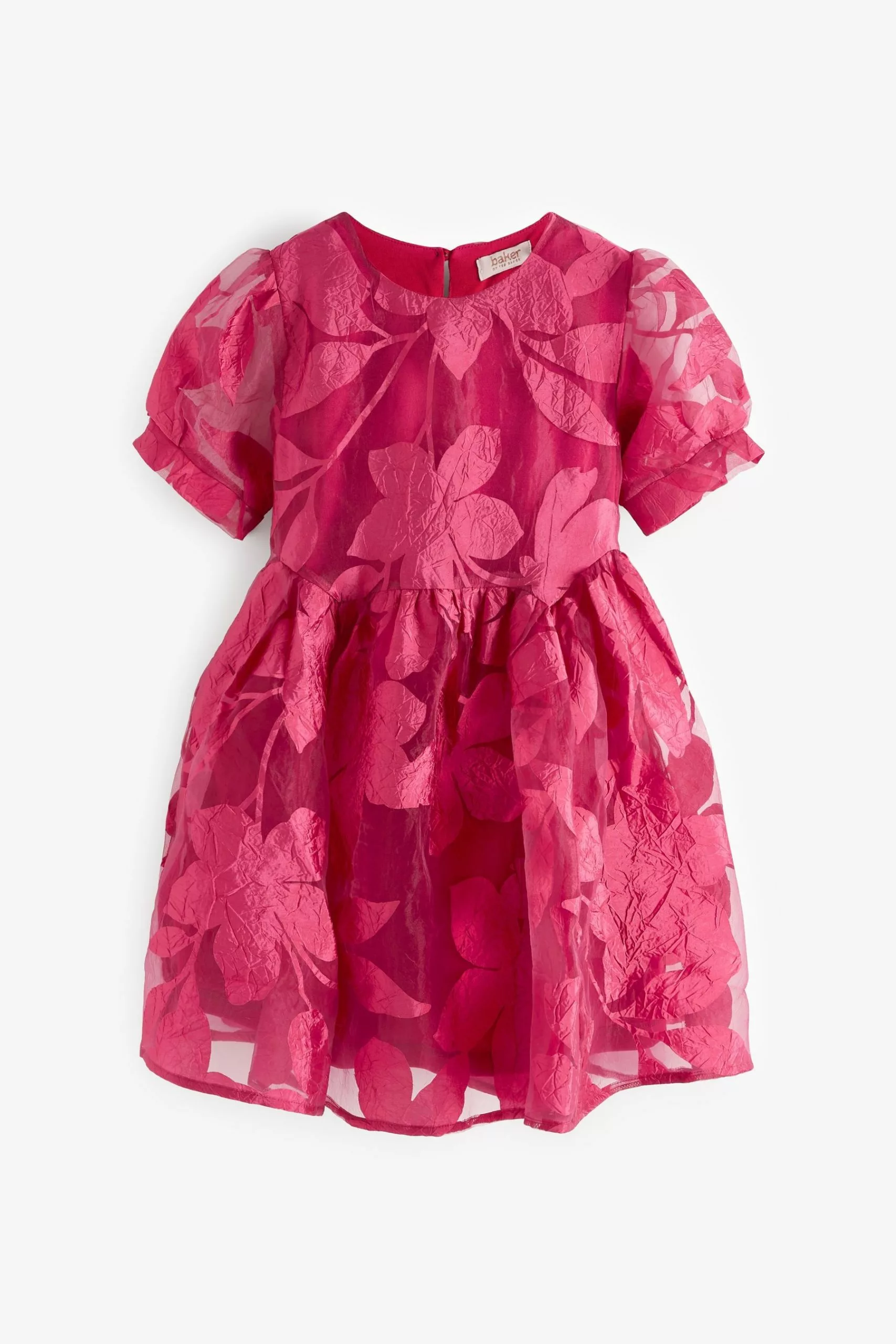 Get her ready for the party season in style with this showstopper dress from Baker by Ted Baker. The rich coloured dress boasts a mesh floral print with oversized sleeves, a full skirt and a charming button fastened back.