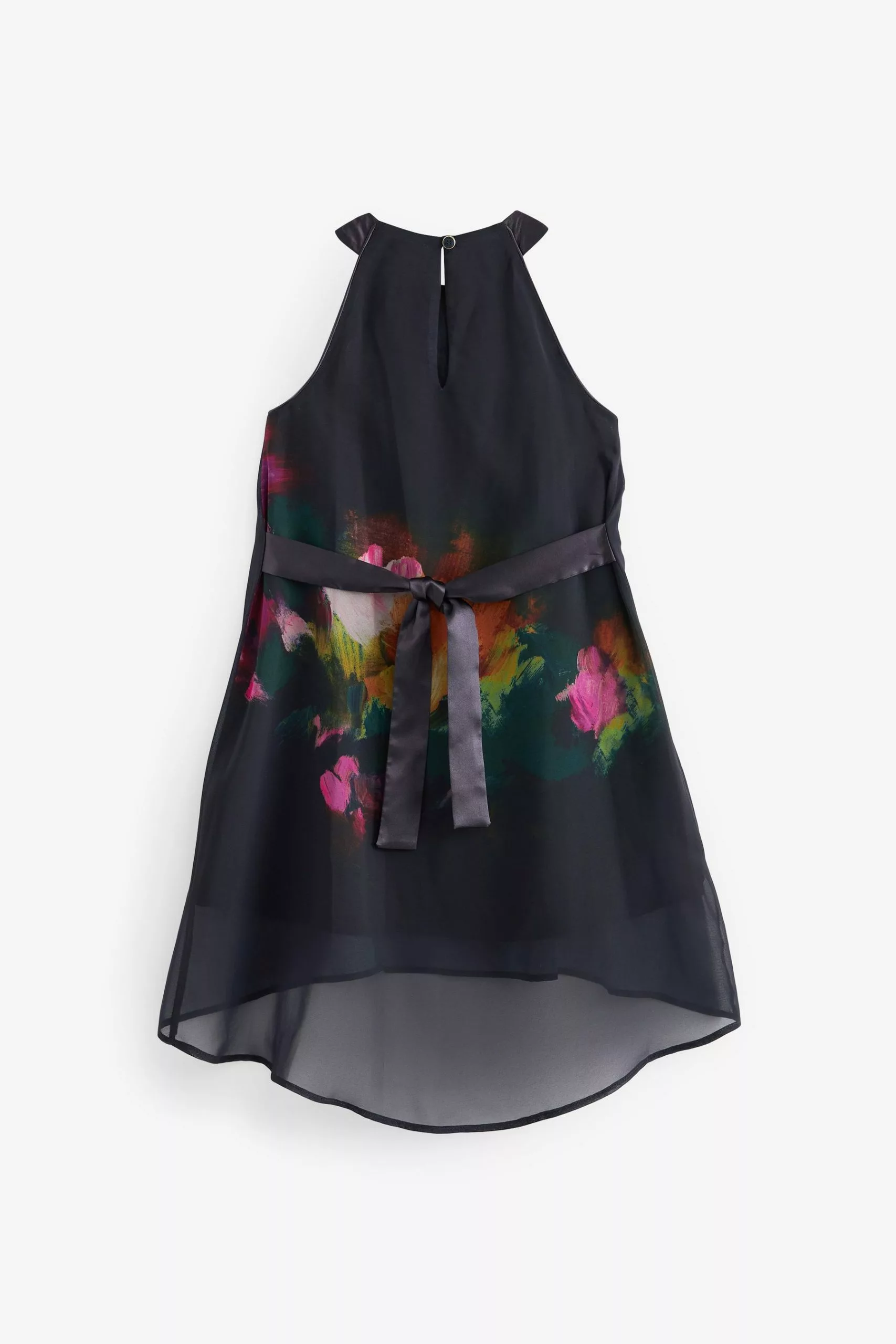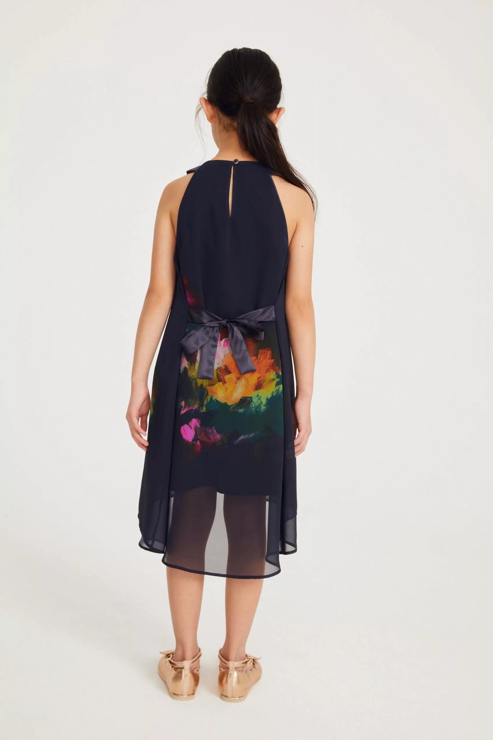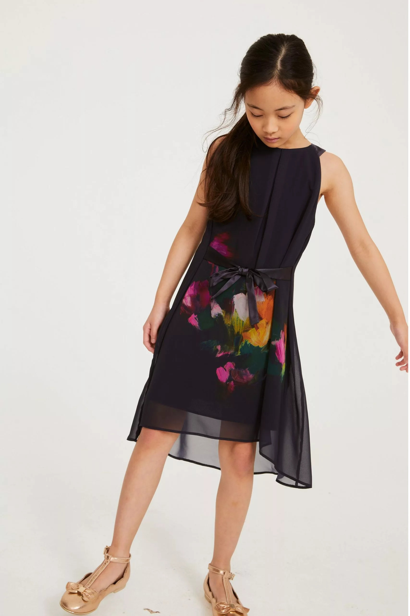 Perfect for parties, this pretty chiffon dress for girls from Baker by Ted Baker will be a lovely addition to her occasionwear wardrobe. Made from soft chiffon and boasting a beautiful floral print, the pretty sleeveless dress has a halterneck and satin belt to complete the look.