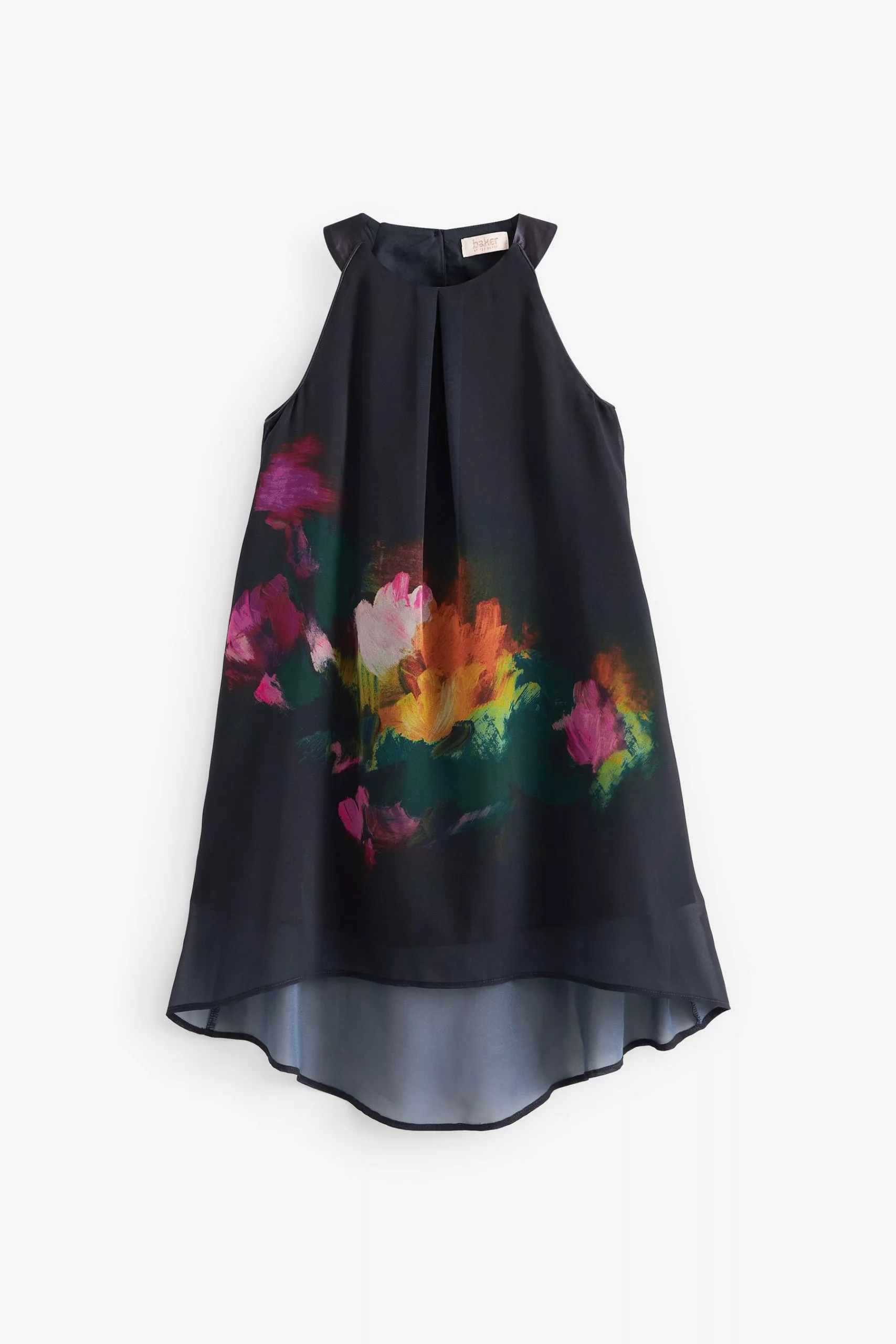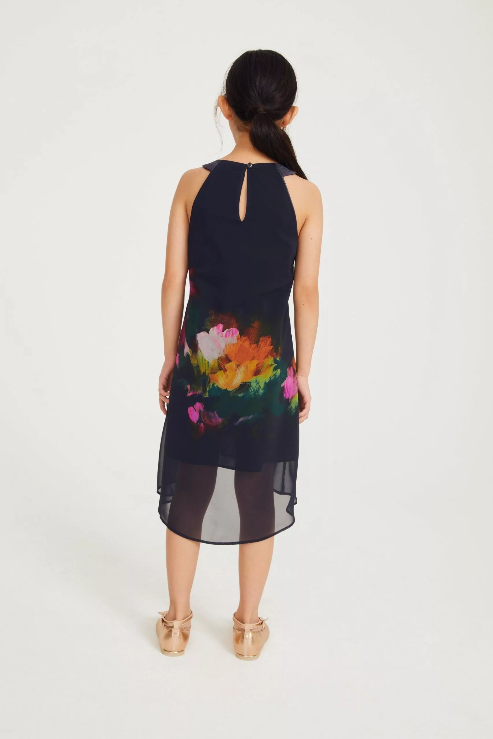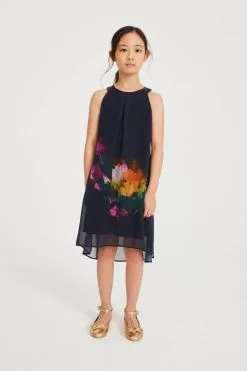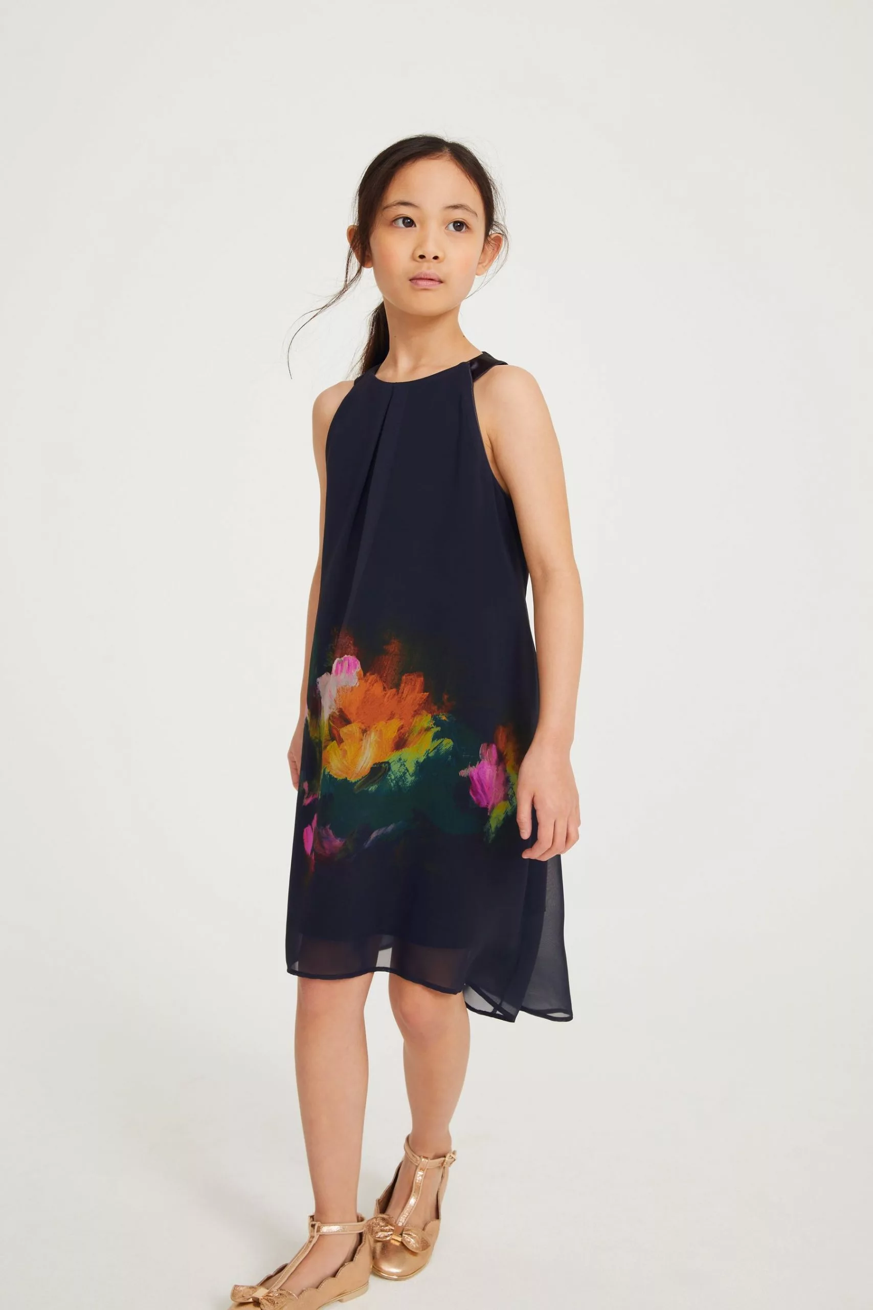 Perfect for parties, this pretty chiffon dress for girls from Baker by Ted Baker will be a lovely addition to her occasionwear wardrobe. Made from soft chiffon and boasting a beautiful floral print, the pretty sleeveless dress has a halterneck and satin belt to complete the look.