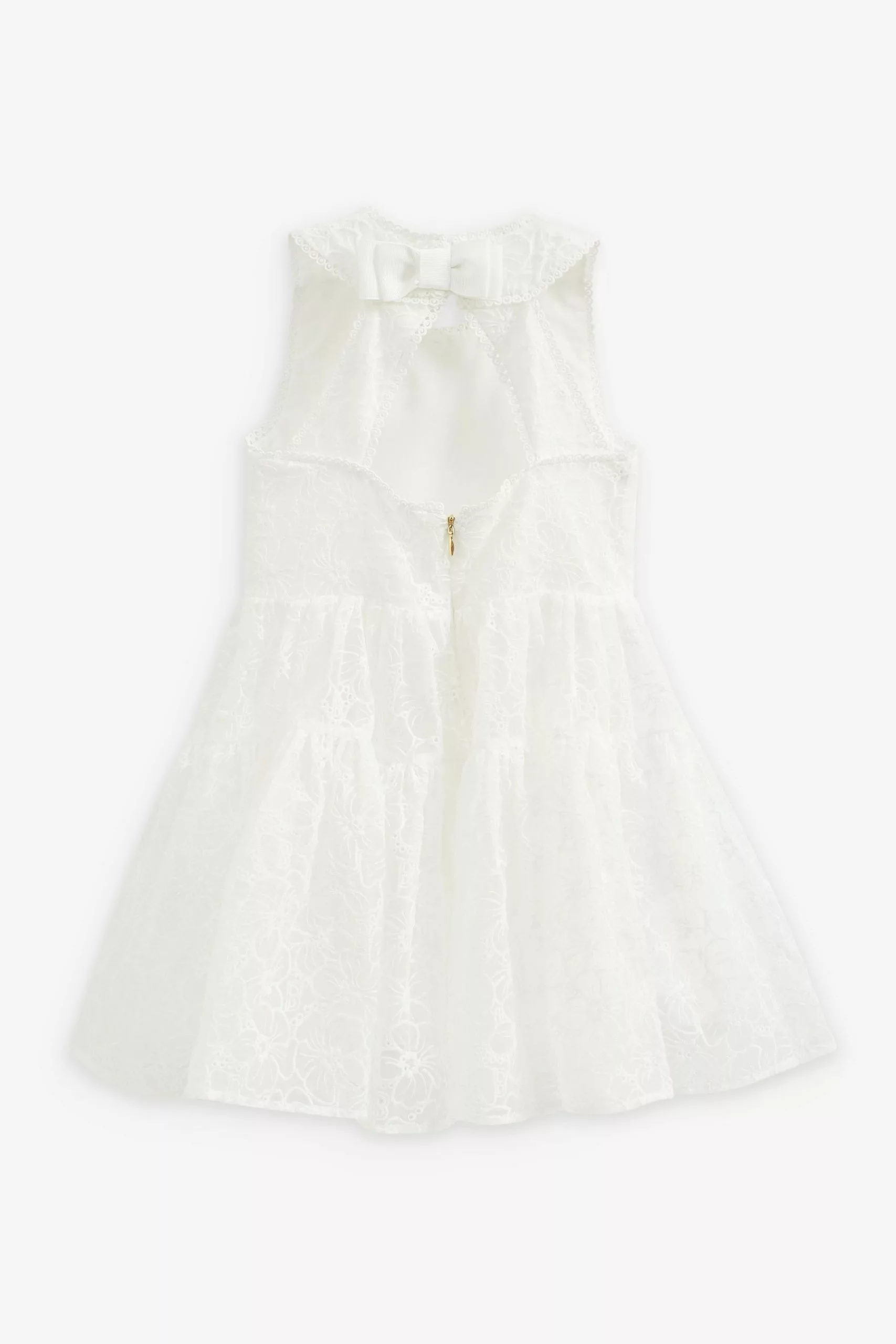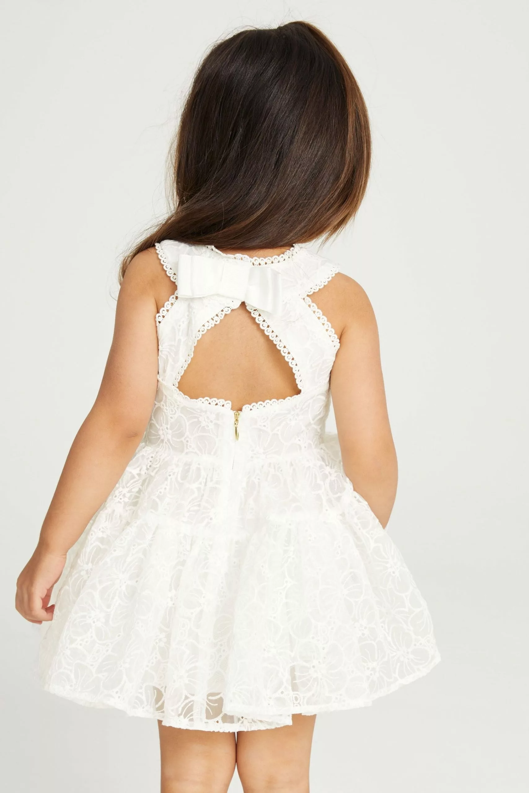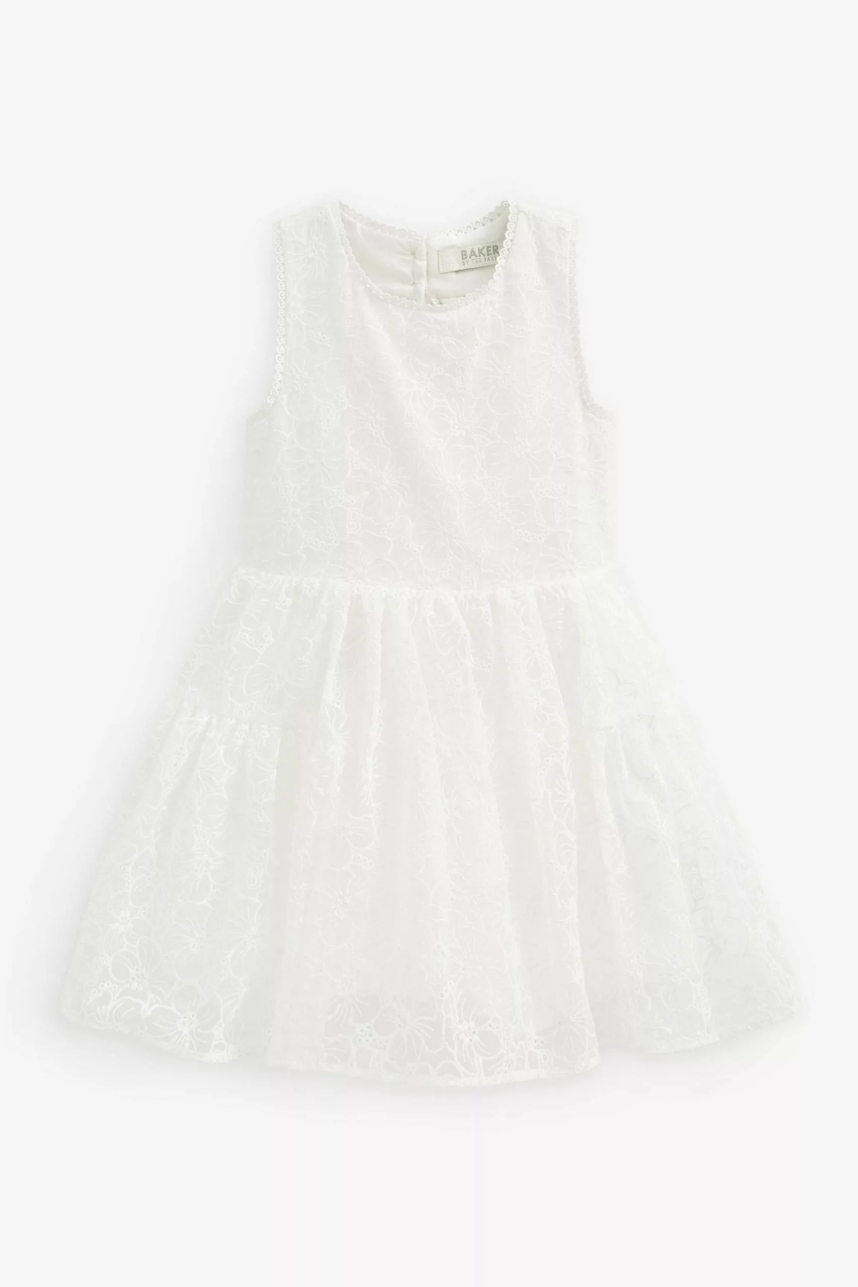 A summer must-have, this beautiful dress from Baker by Ted Baker is designed for your little girl to enjoy wearing and more importantly, twirling in. The pretty pink sleeveless dress has an all over branded print with cute broderie edging. The skirt is layered for fullness and there is a stunning cut out detail at the back with a pretty bow and a concealed zip fastening.