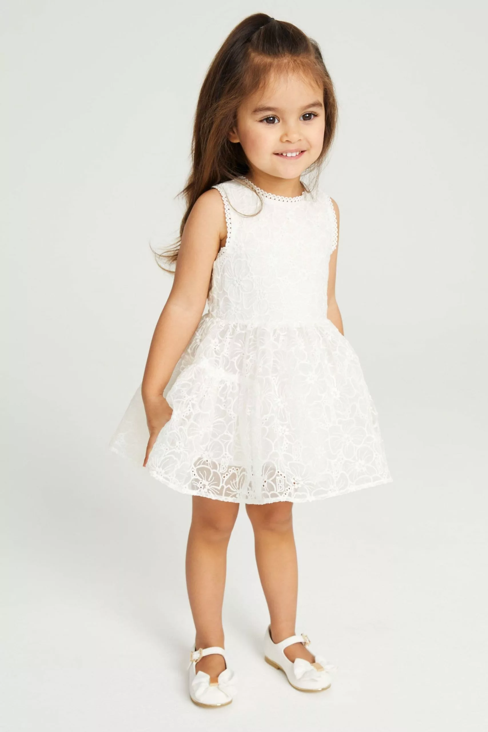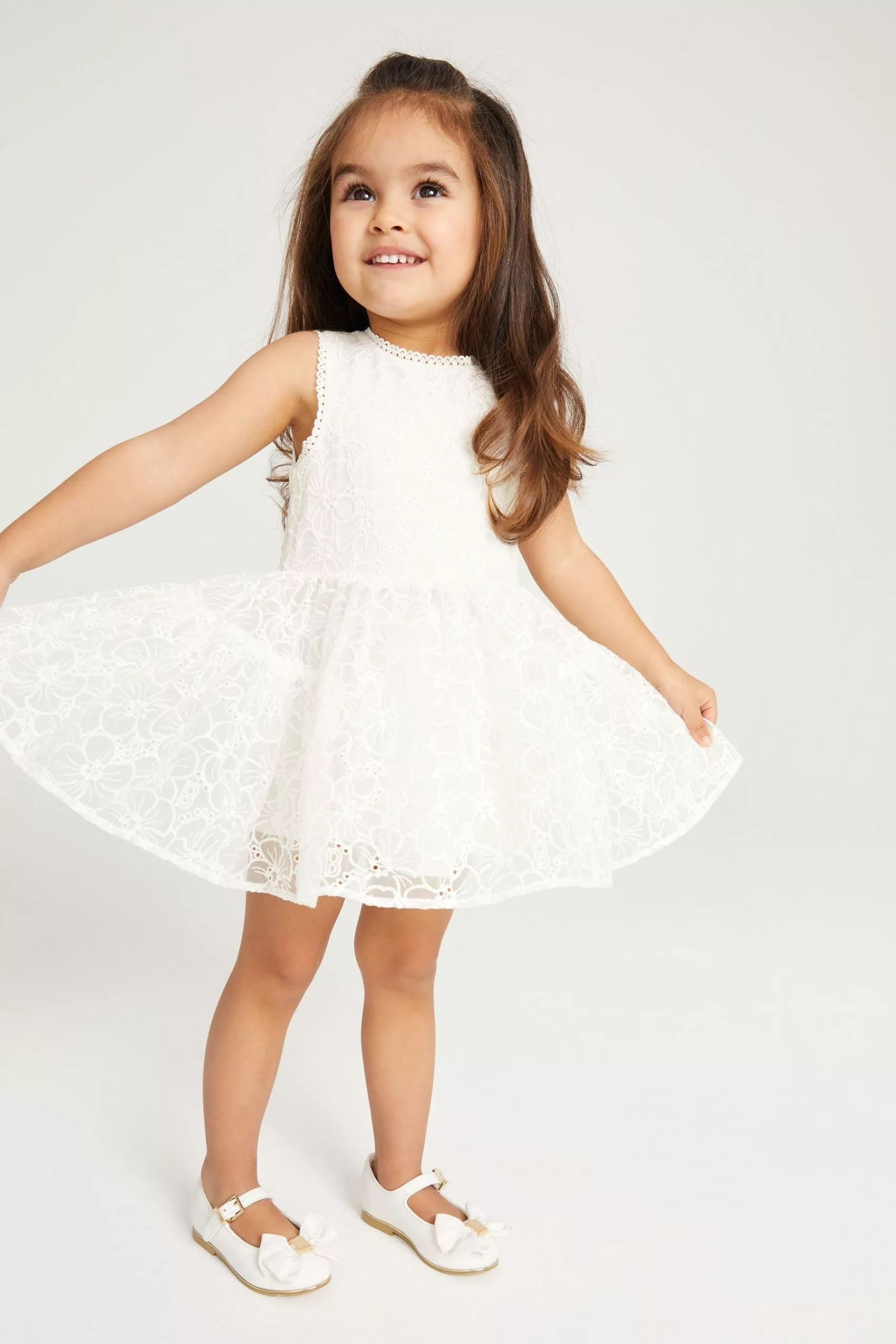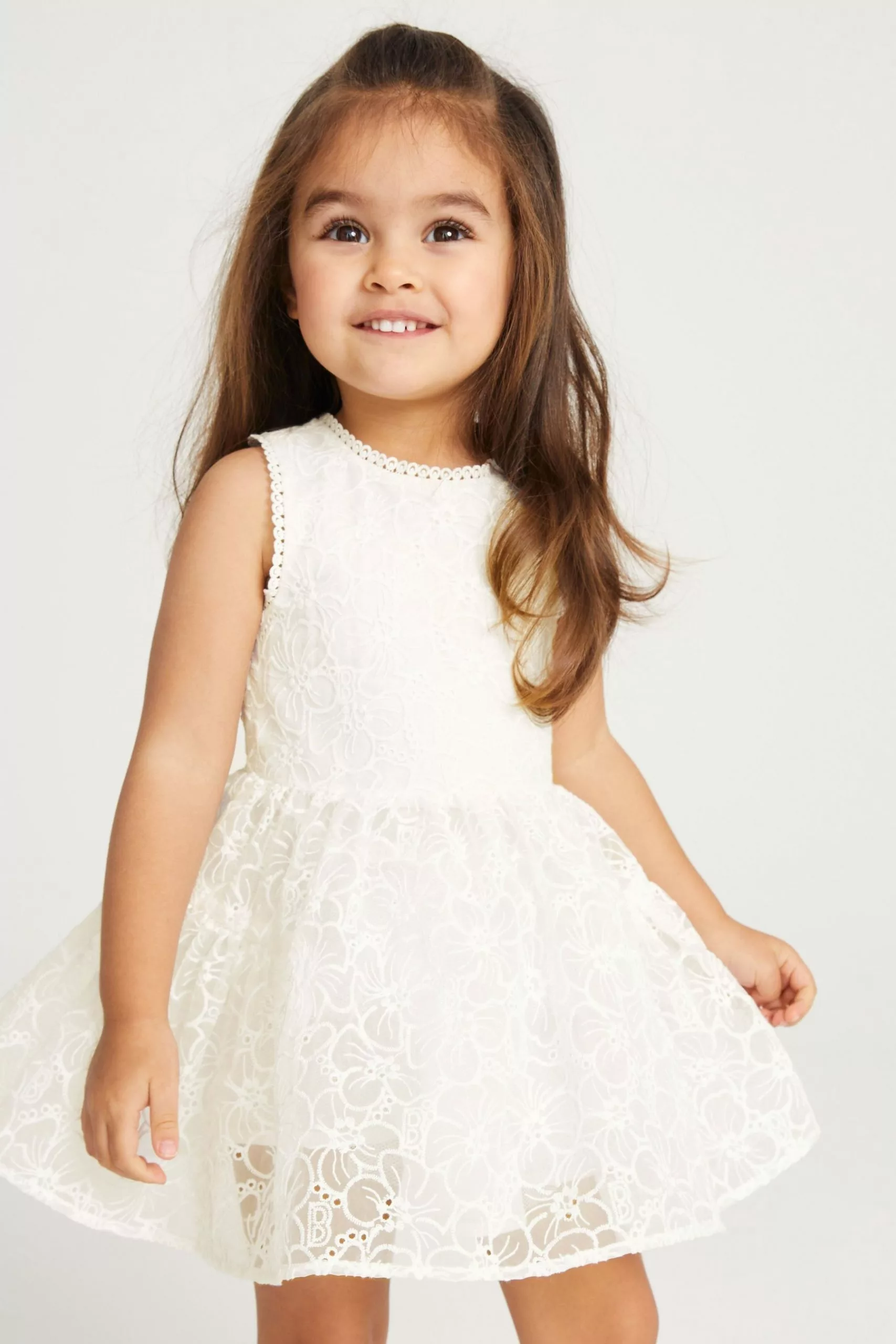A summer must-have, this beautiful dress from Baker by Ted Baker is designed for your little girl to enjoy wearing and more importantly, twirling in. The pretty pink sleeveless dress has an all over branded print with cute broderie edging. The skirt is layered for fullness and there is a stunning cut out detail at the back with a pretty bow and a concealed zip fastening.