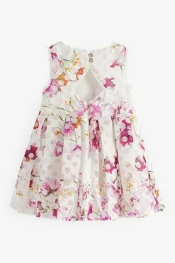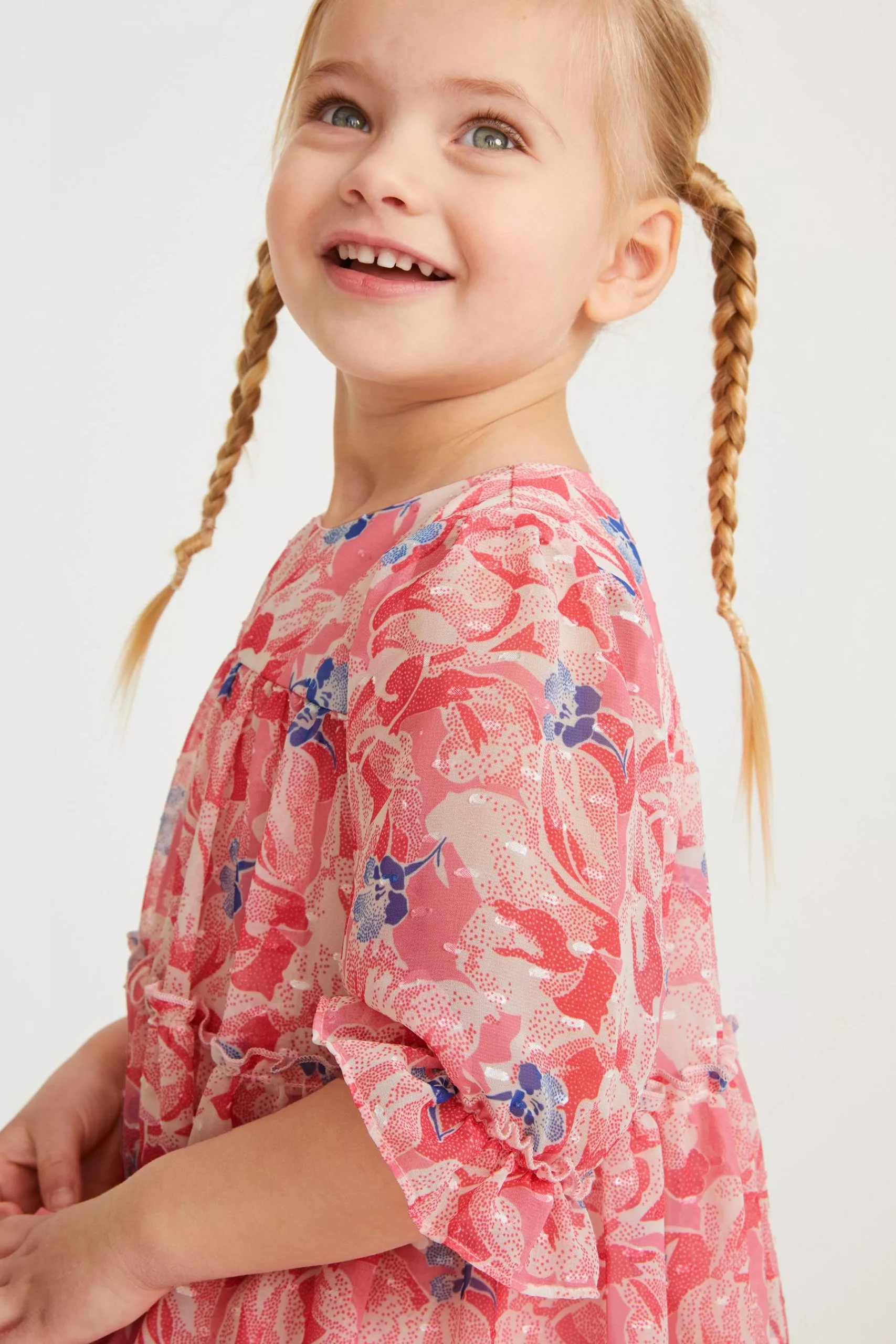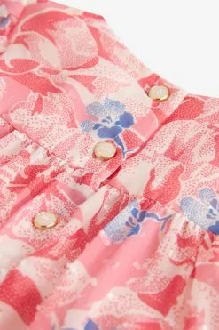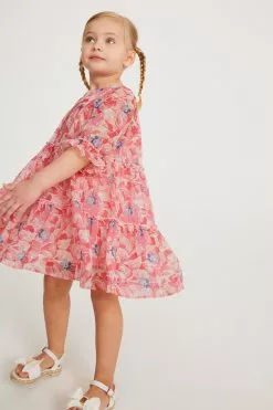 Floaty and fabulous, your little lady will love this gorgeous dress from Baker by Ted Baker. The pretty piece made from soft chiffon has a delightful floral print all over it with billowing sleeves that have a cinched detail on the cuffs and it is finished with branded buttons on the back. This adorable dress will see her through the summer in style.