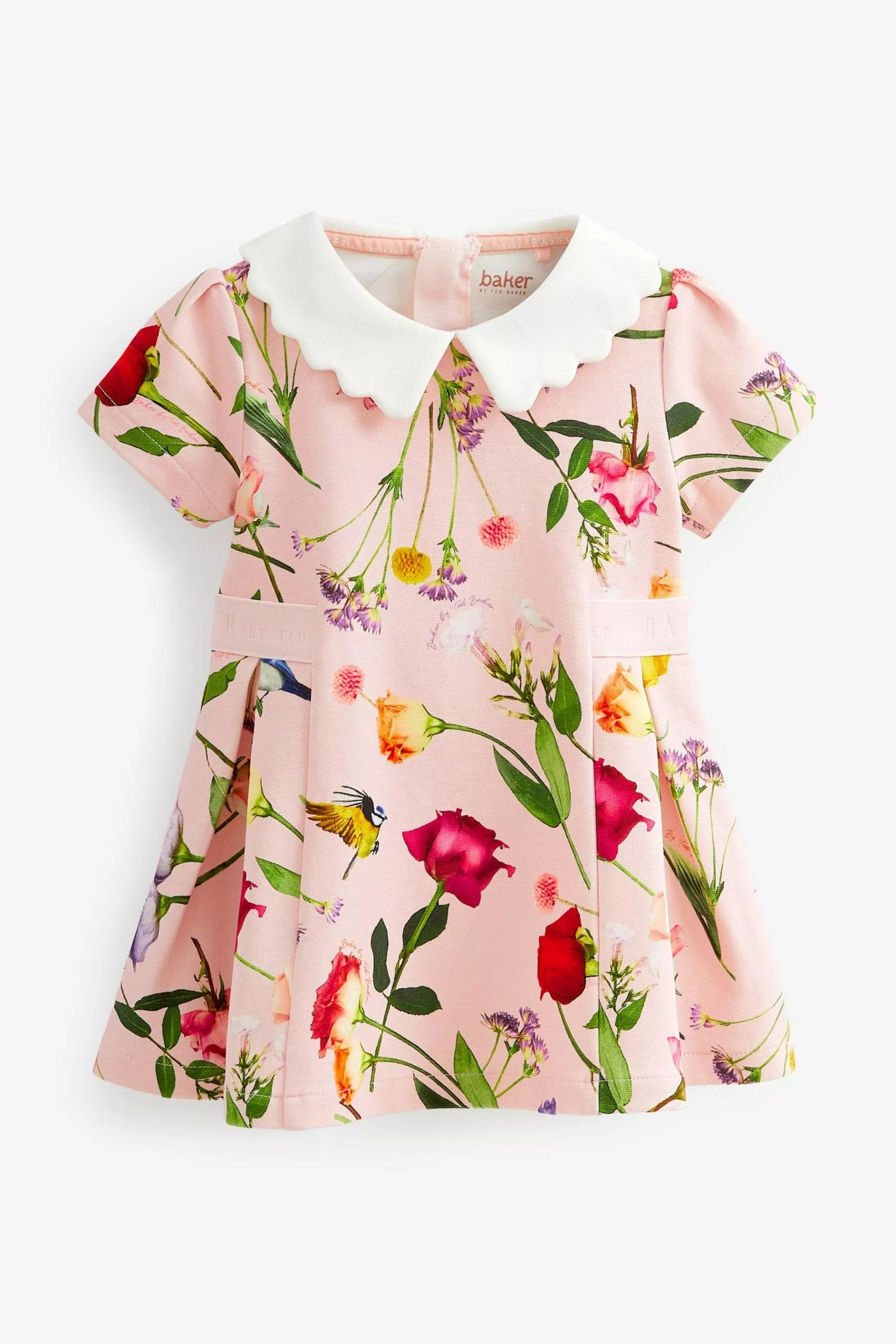 Dress up your little lady in style with this gorgeous Baker by Ted Baker dress. Covered in the designer’s signature floral print on a pink base, this adorable ponte dress also features a branded elasticated waistband with a concealed zip fastening at the back and a scalloped white collar detail. Perfect for parties, just add pretty shoes and she will be ready to go.