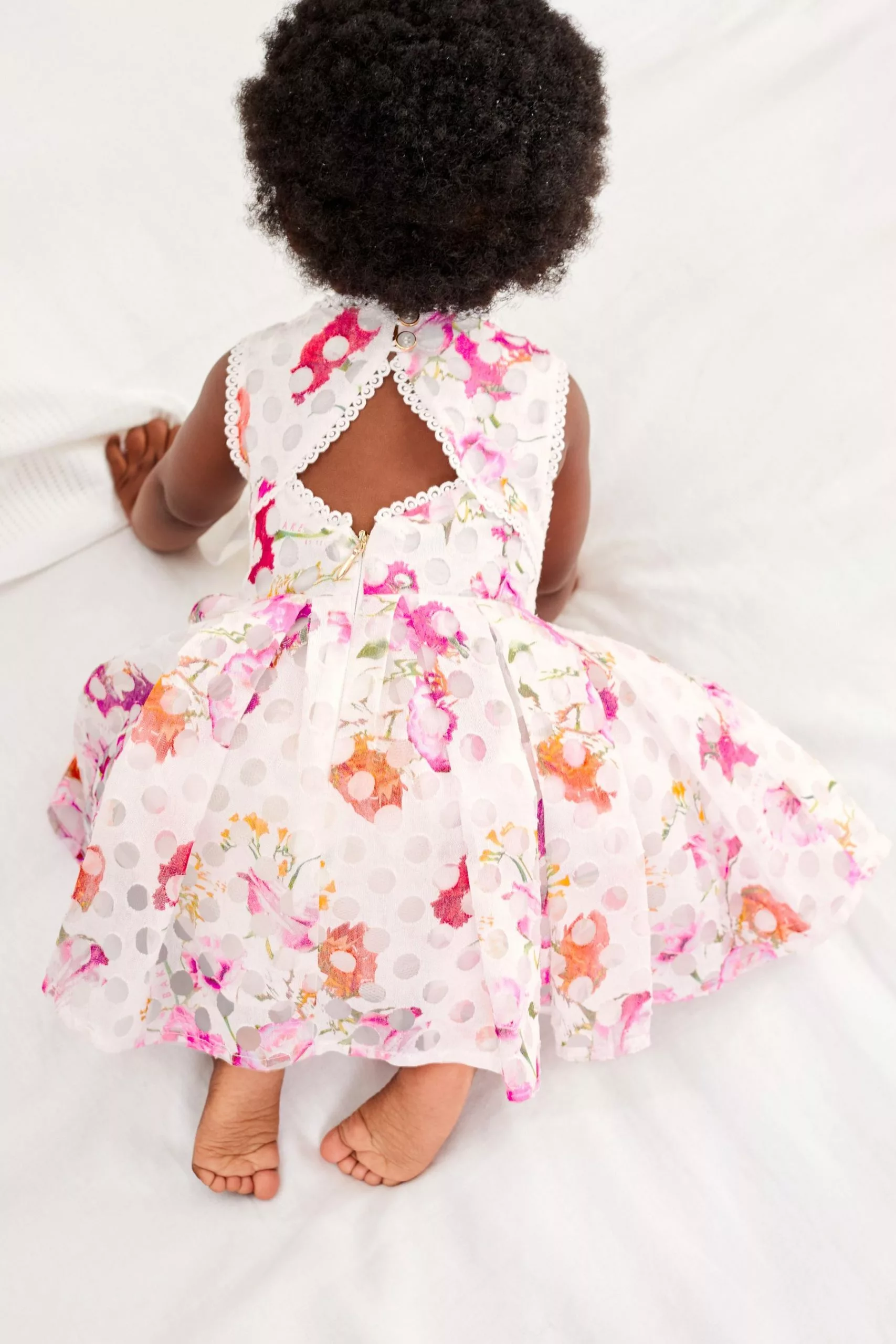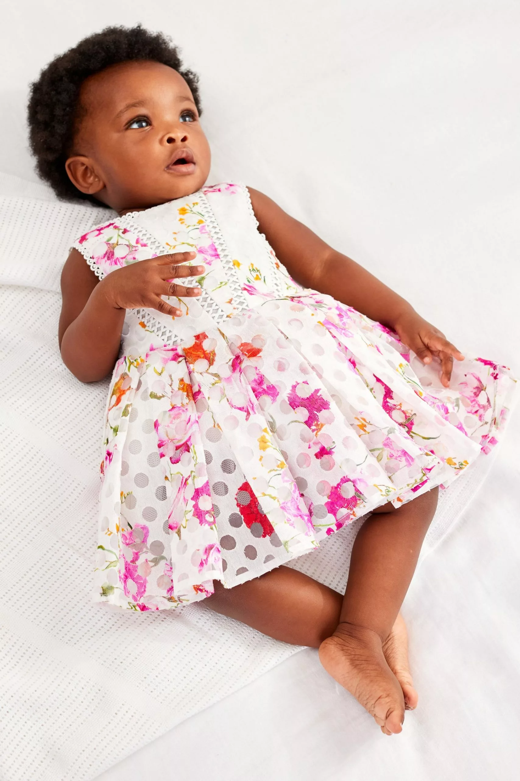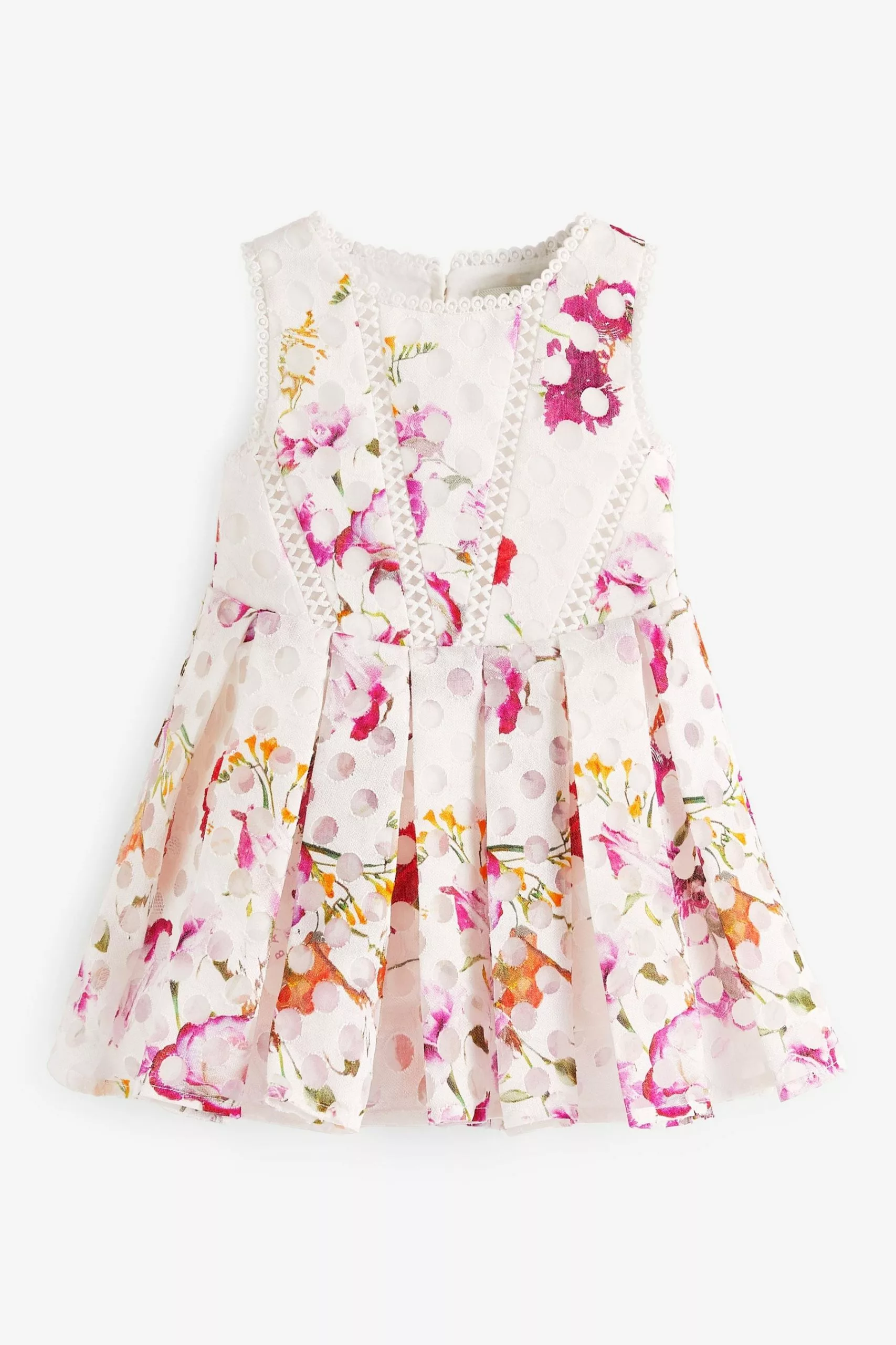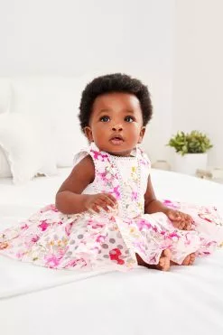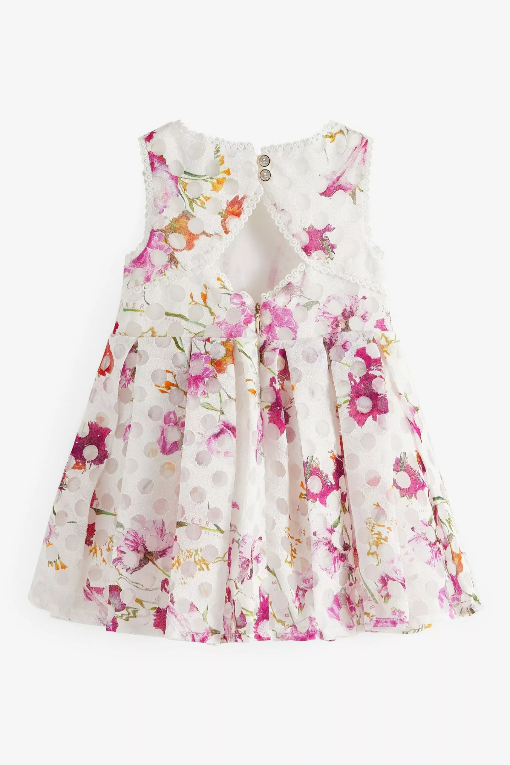 Bursting with pattern and colour, this dress from Baker by Ted Baker will be a charming addition to your baby girl’s wardrobe. Perfect for special occasions, the floral and polka dot printed piece made from a soft viscose blend has a grid detailing on the bodice and a stunning pleated skirt.
