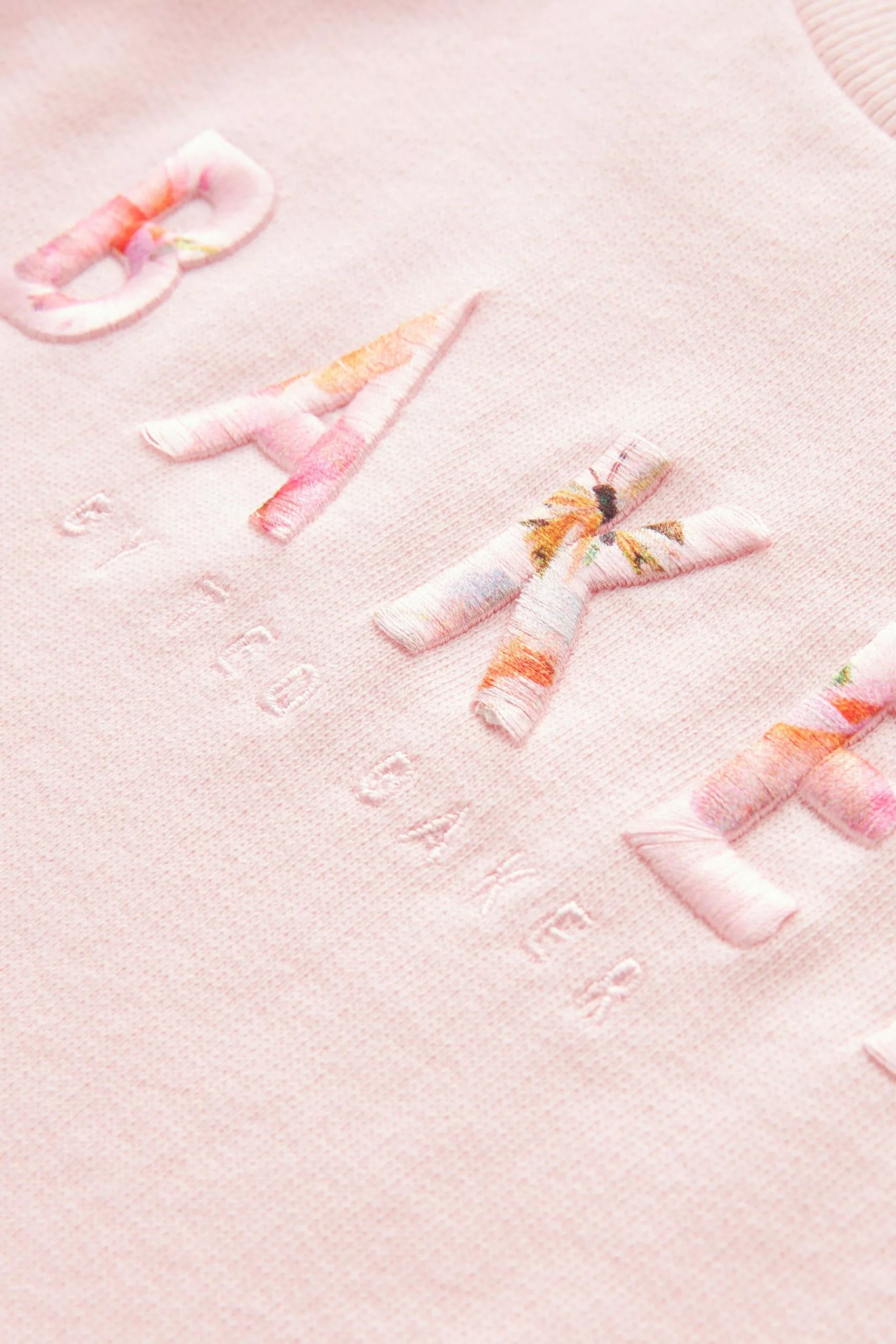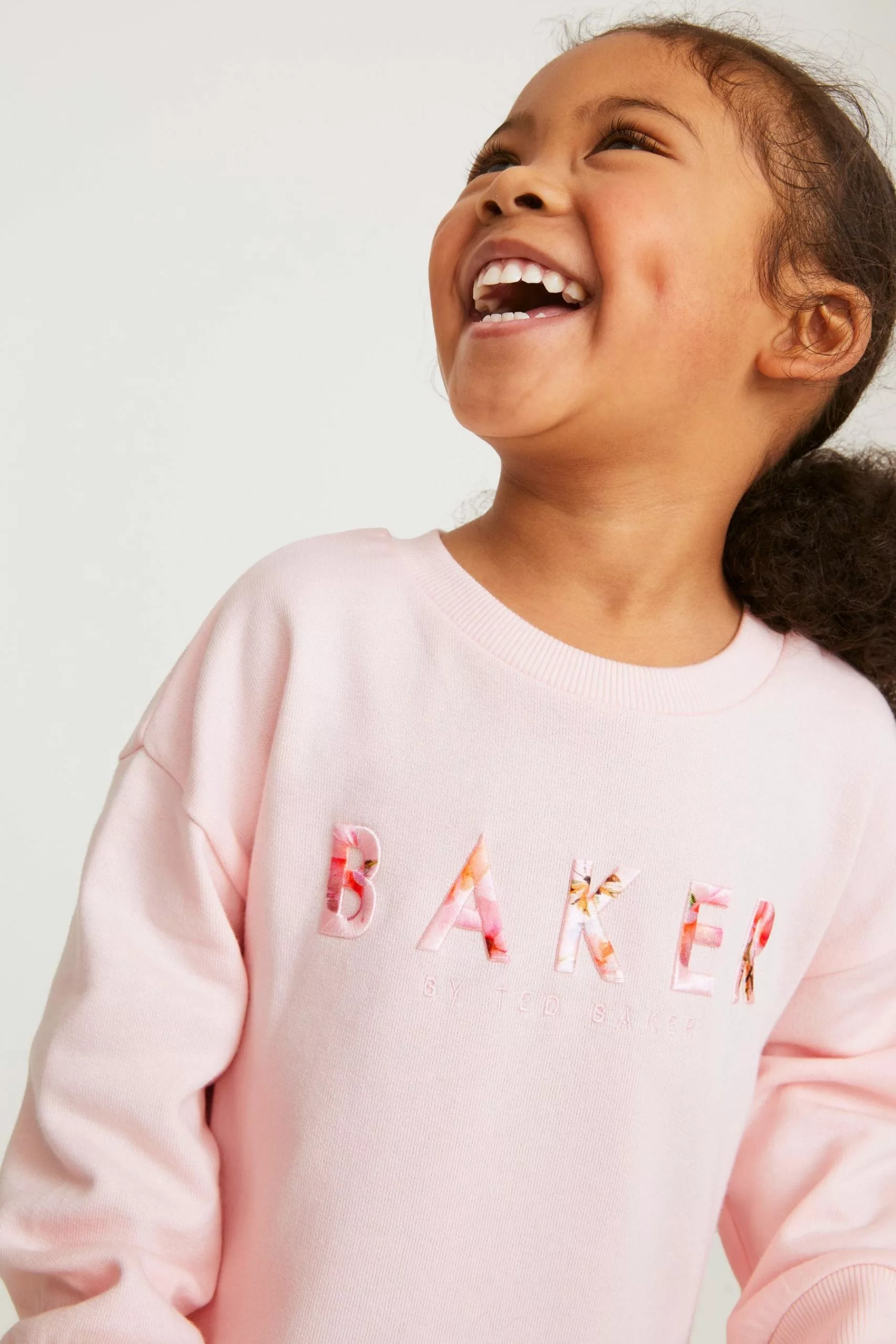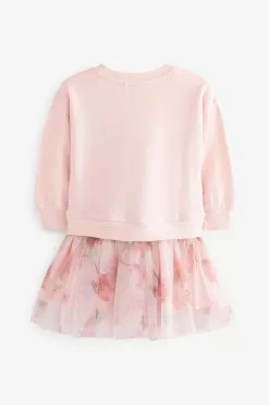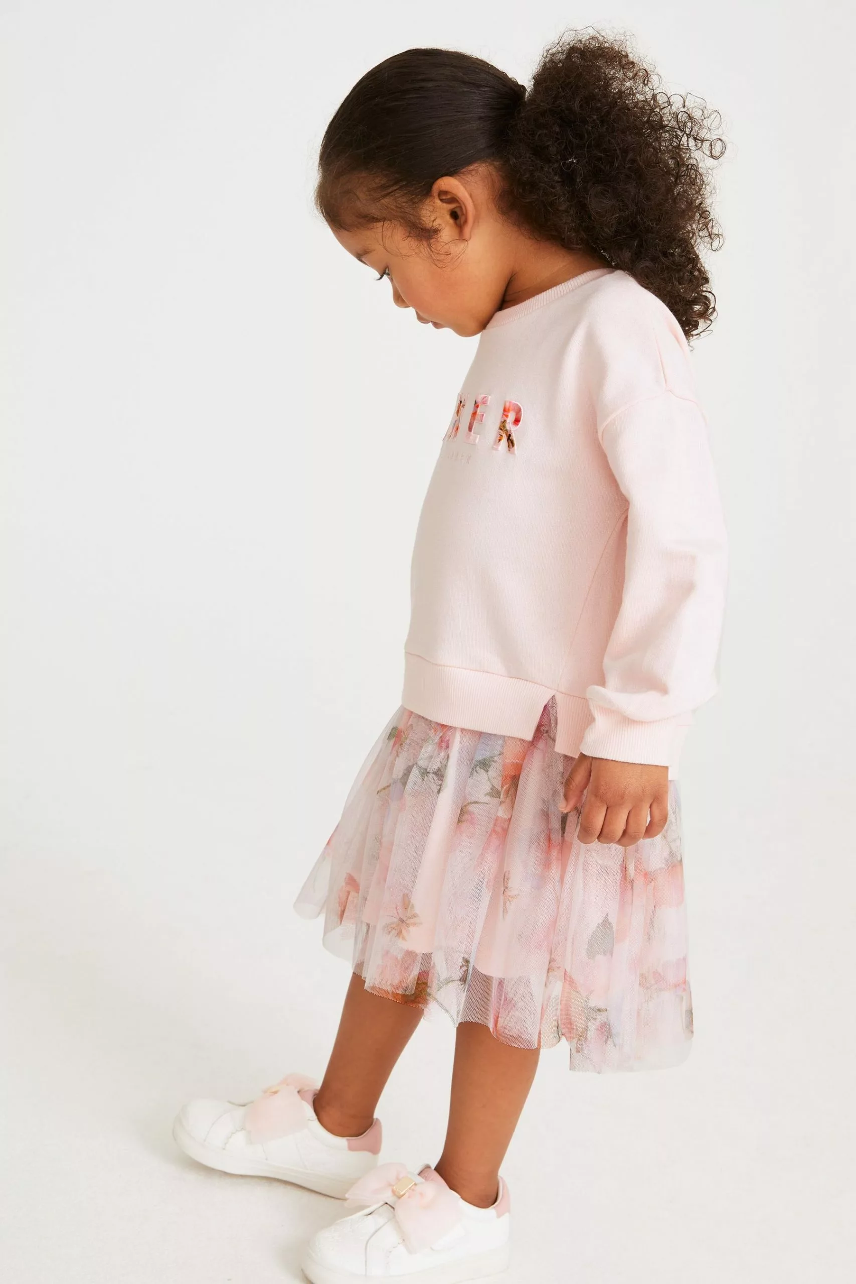 A beautiful dress for your little lady to enjoy wearing this summer from Baker by Ted Baker. The soft pink mockable dress features a sweatshirt top half that has the iconic branding appliquéd across the front and it is finely finished with a delicate mesh net skirt that is decorated all over with a floral print. Team it with a pretty pair of shoes to complete the look.