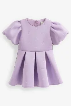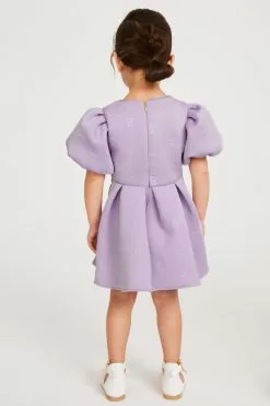 She will be the best dressed guest at the party in this adorable dress from Baker by Ted Baker. Made with a structured scuba fabric, the sugary lilac dress boasts a full skirt with puff sleeves and a side tape detailing. team this pretty piece with some equally as beautiful shoes and she can dance the day (or night) away in style.