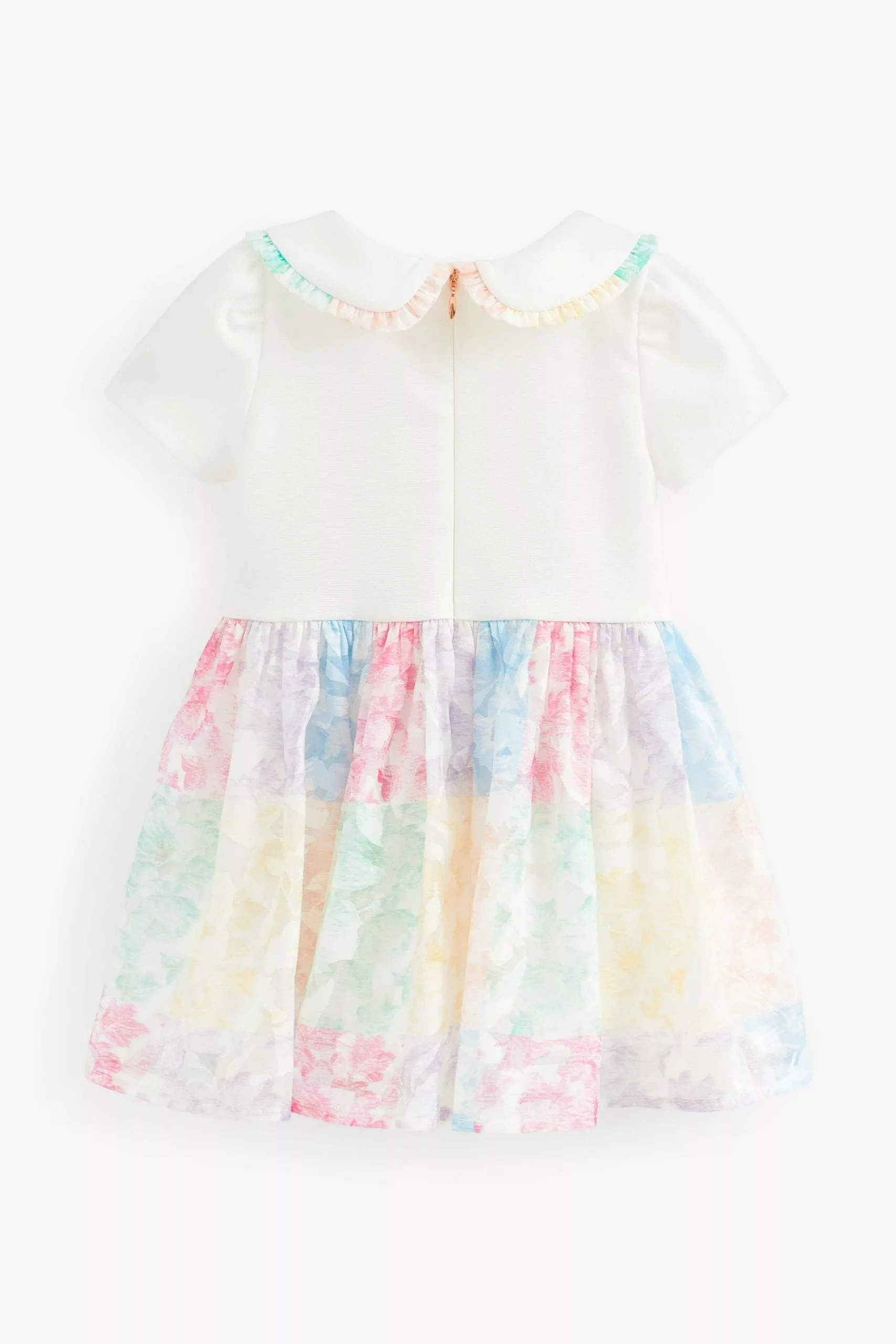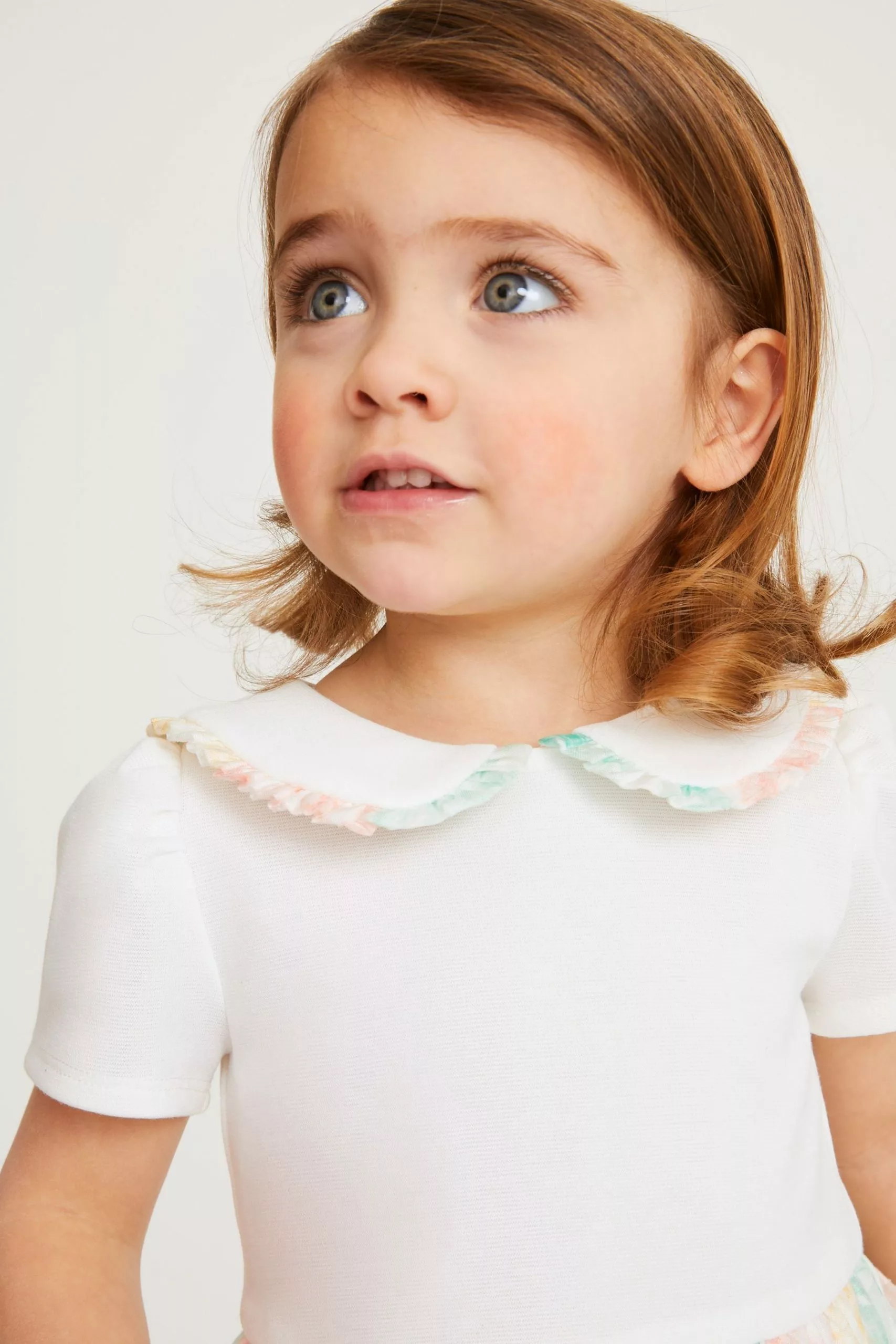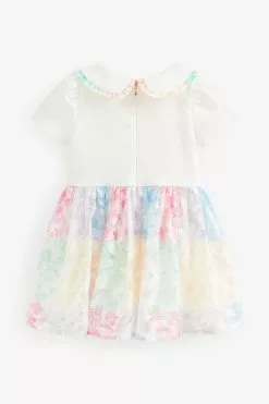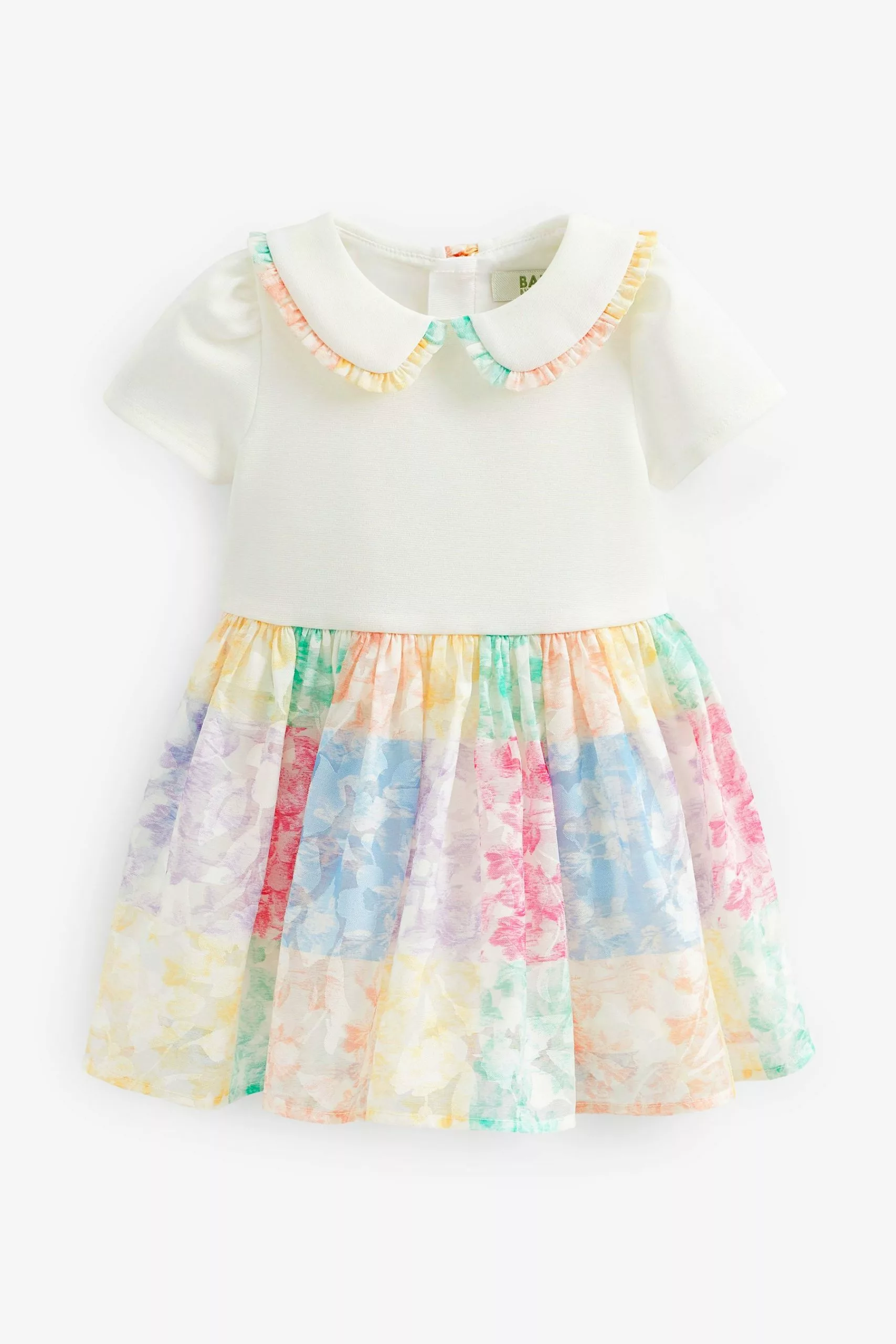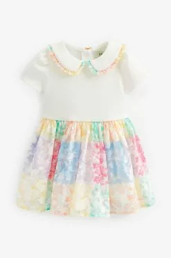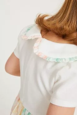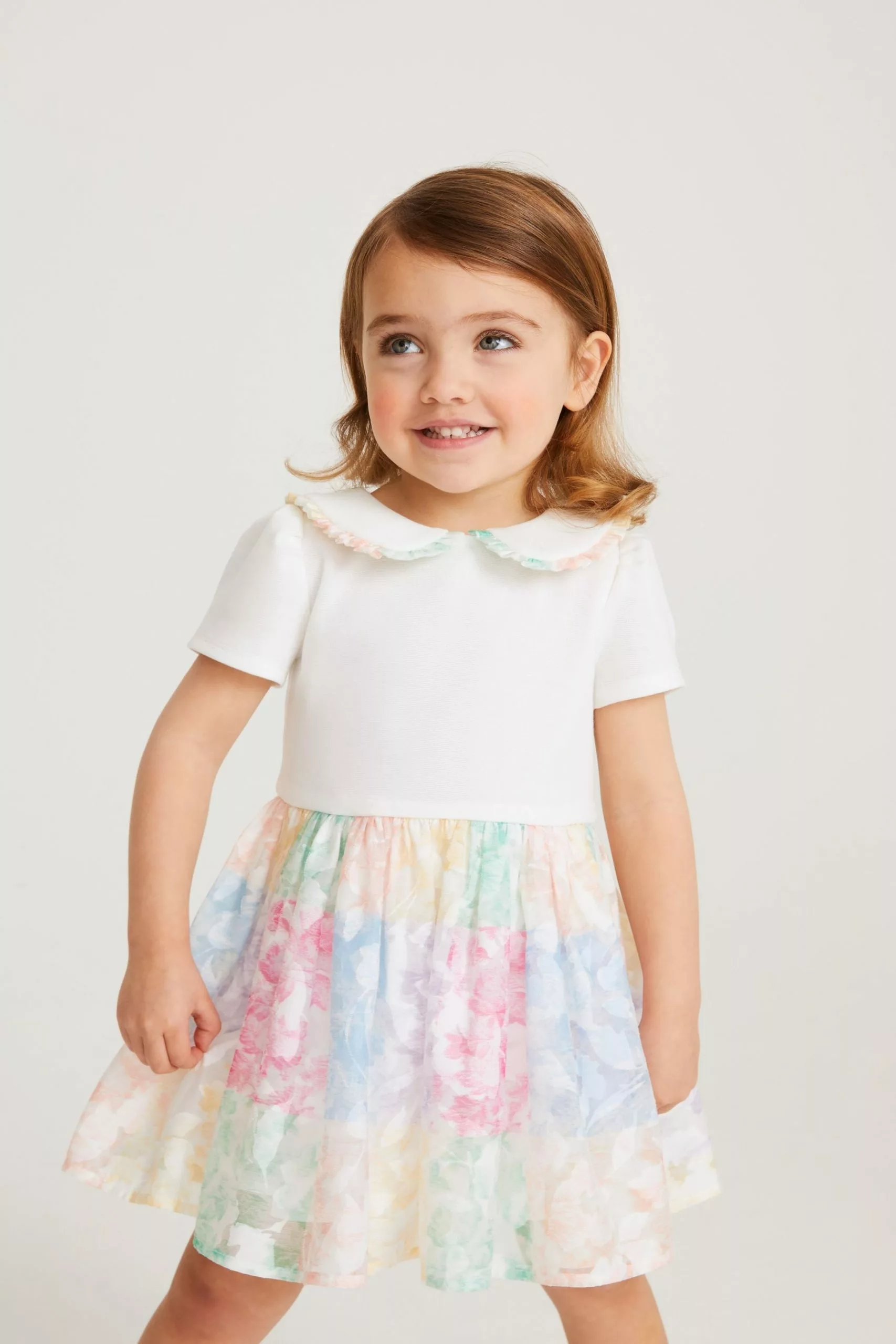 Dress up your little darling in this adorable dress from Baker by Ted Baker. Boasting a mockable top and skirt look, the fresh white bodice has a pretty collar that is trimmed with a charming multicoloured print ruffle detail that matches the skirt. Team it with a pair of pretty sandals to complete the outfit.