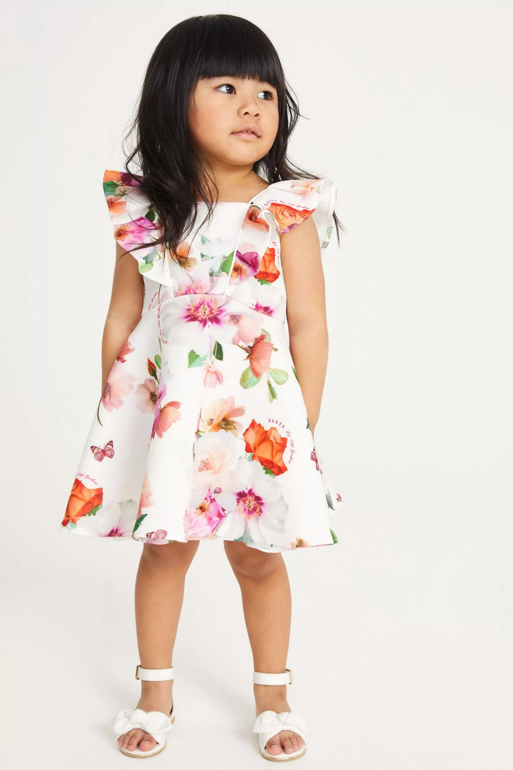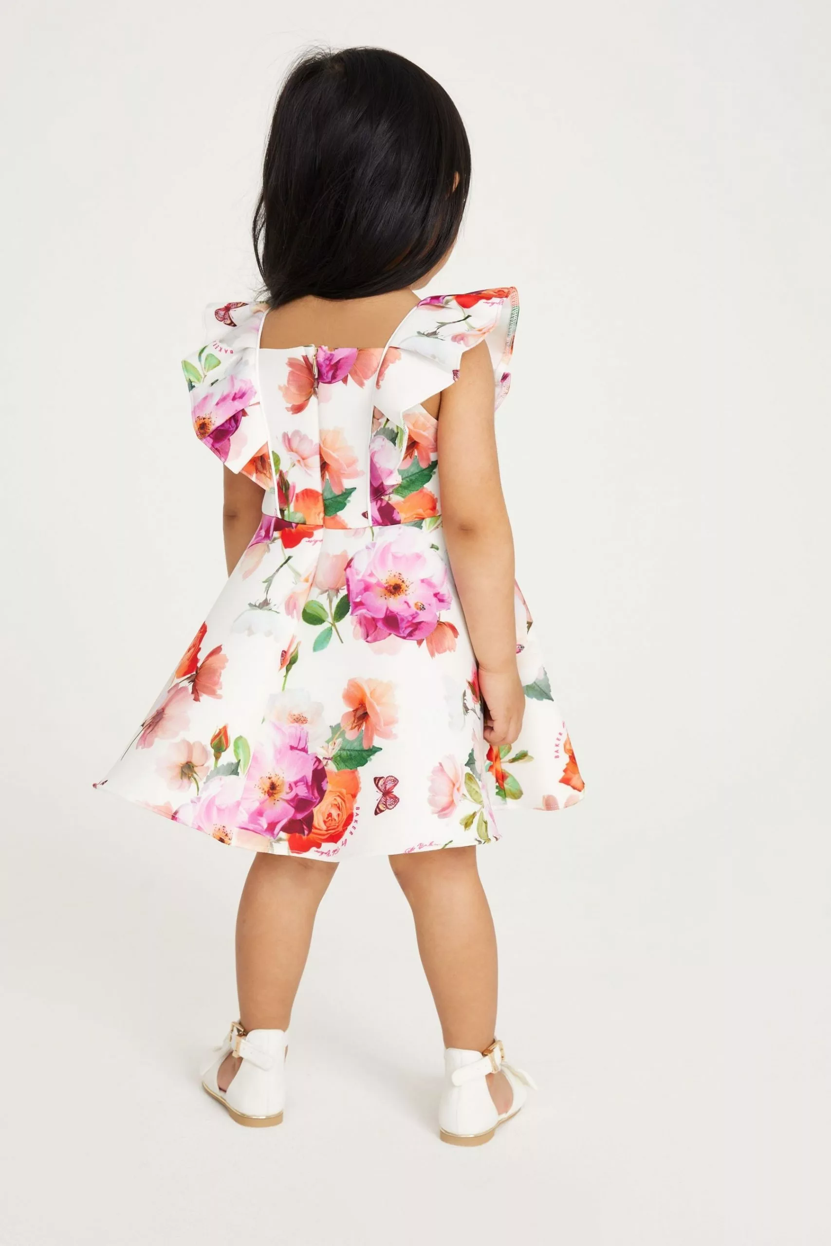 A beautiful dress from Baker by Ted Baker that will be a lovely addition to your little girl’s wardrobe. Made from a structured scuba fabric, this charming floral printed piece also boasts a concealed zip fastening at the back and pretty frilled shoulders. She will feel like a princess in this adorable dress.