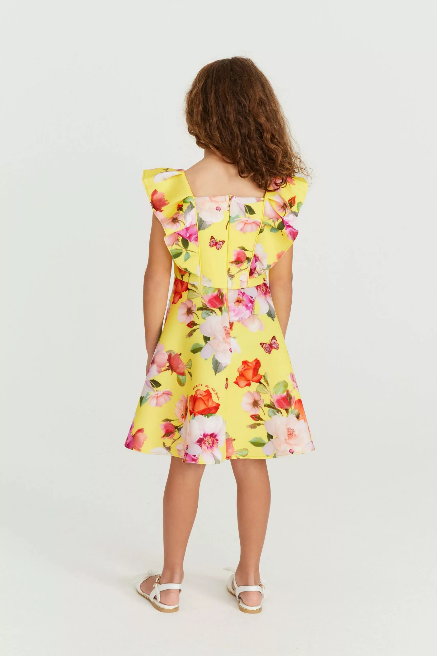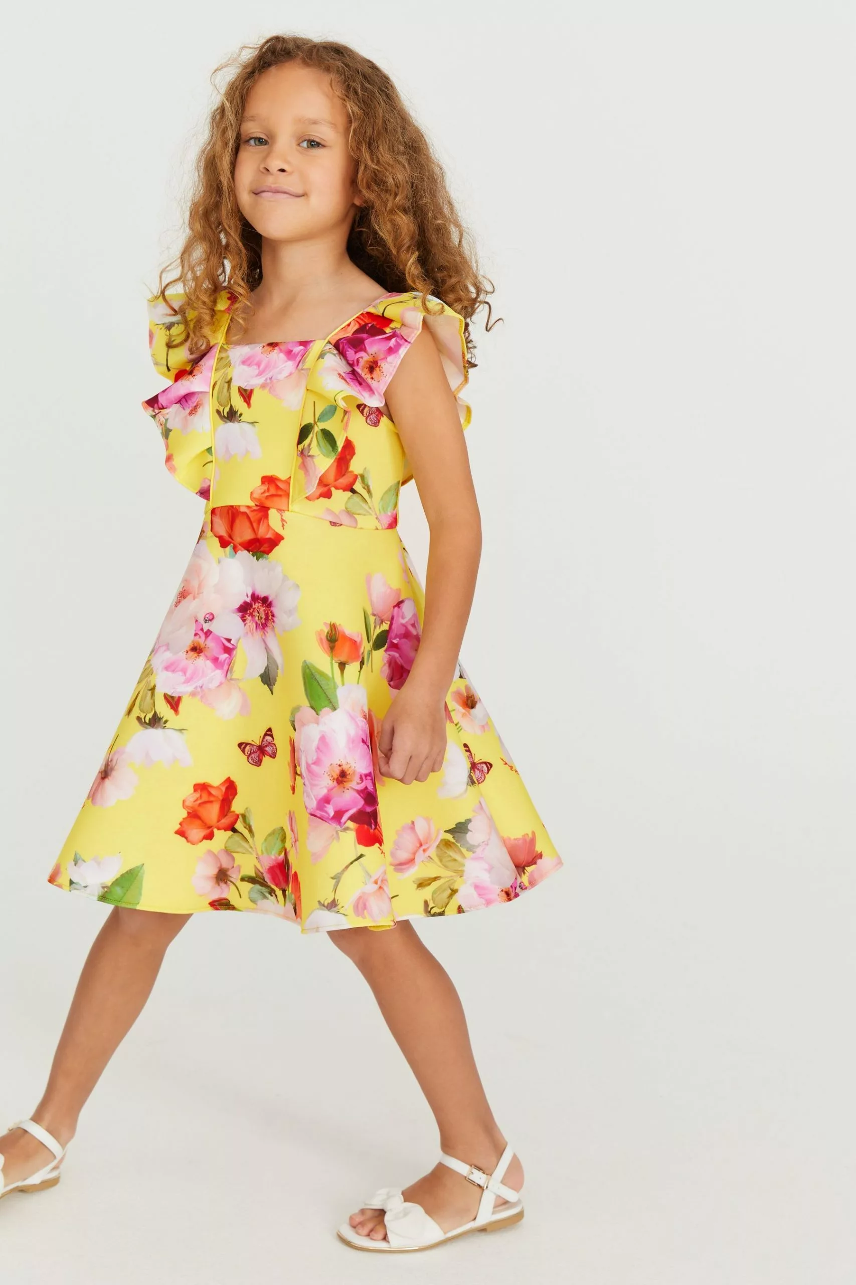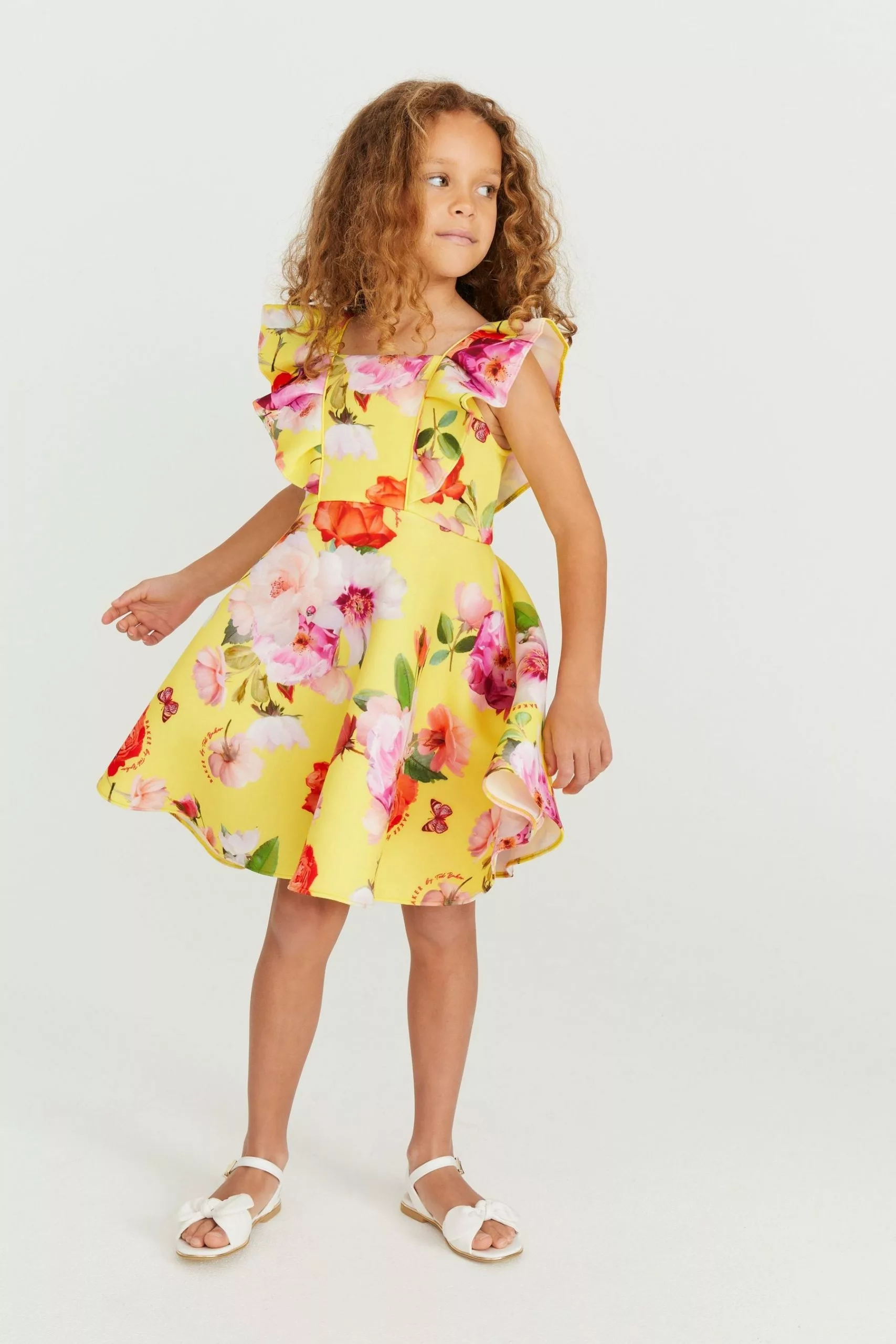 Inject some serious colour and style into her wardrobe this season with this beautiful dress from Baker by Ted Baker. Boasting a charming and colourful floral print on a yellow backdrop, this scuba fabric dress also cuts a pretty silhouette with a full skirt and ruffle straps.