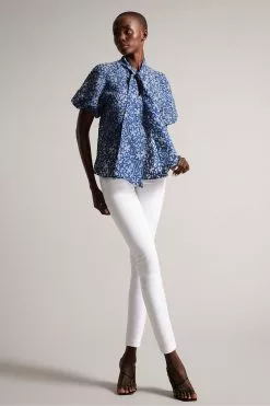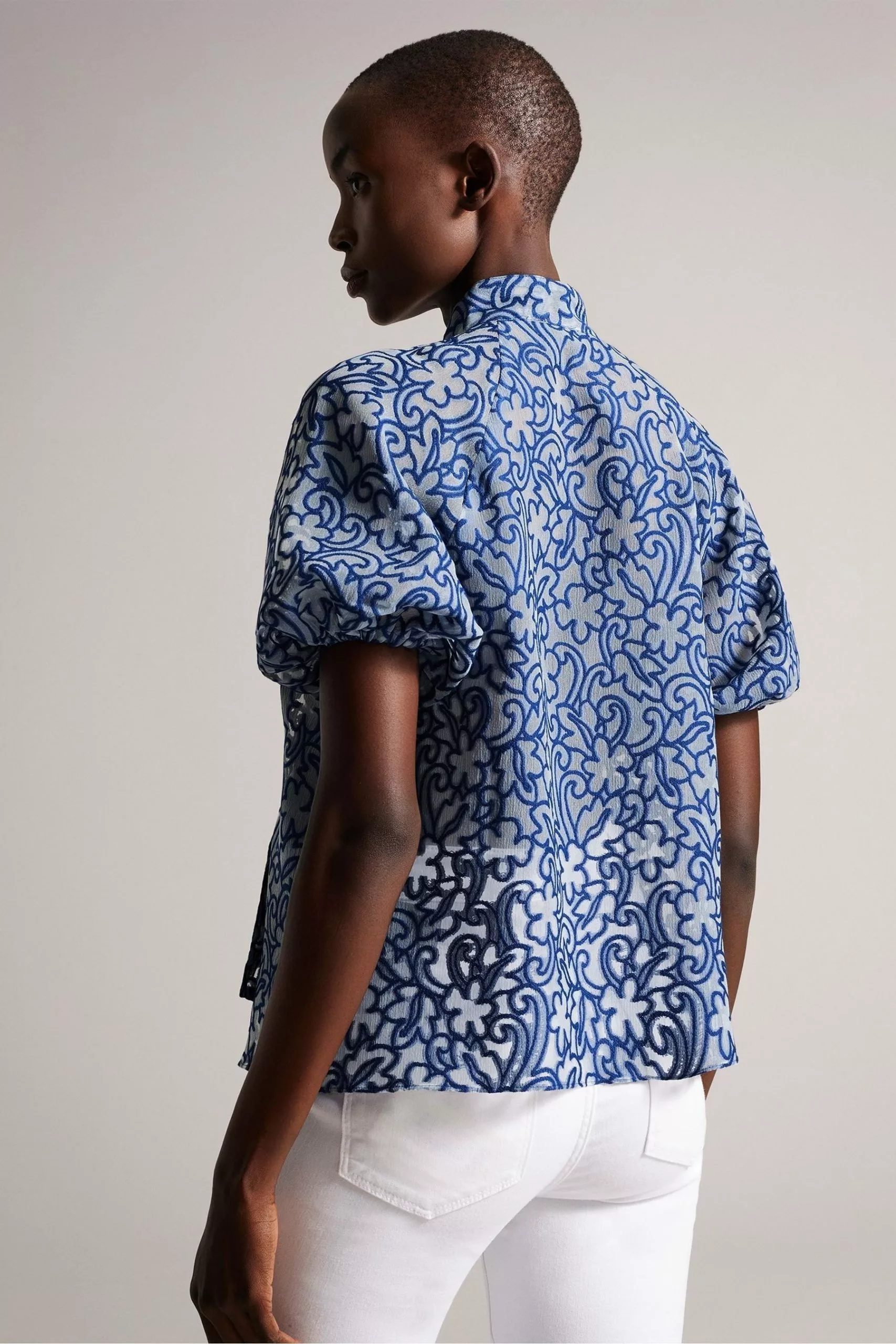 Add a touch of texture and colour to your outfit with the dreamy MELODIY top. Its paisley design is sure to stand out, while puff sleeves and a necktie enhance the silhouette.
