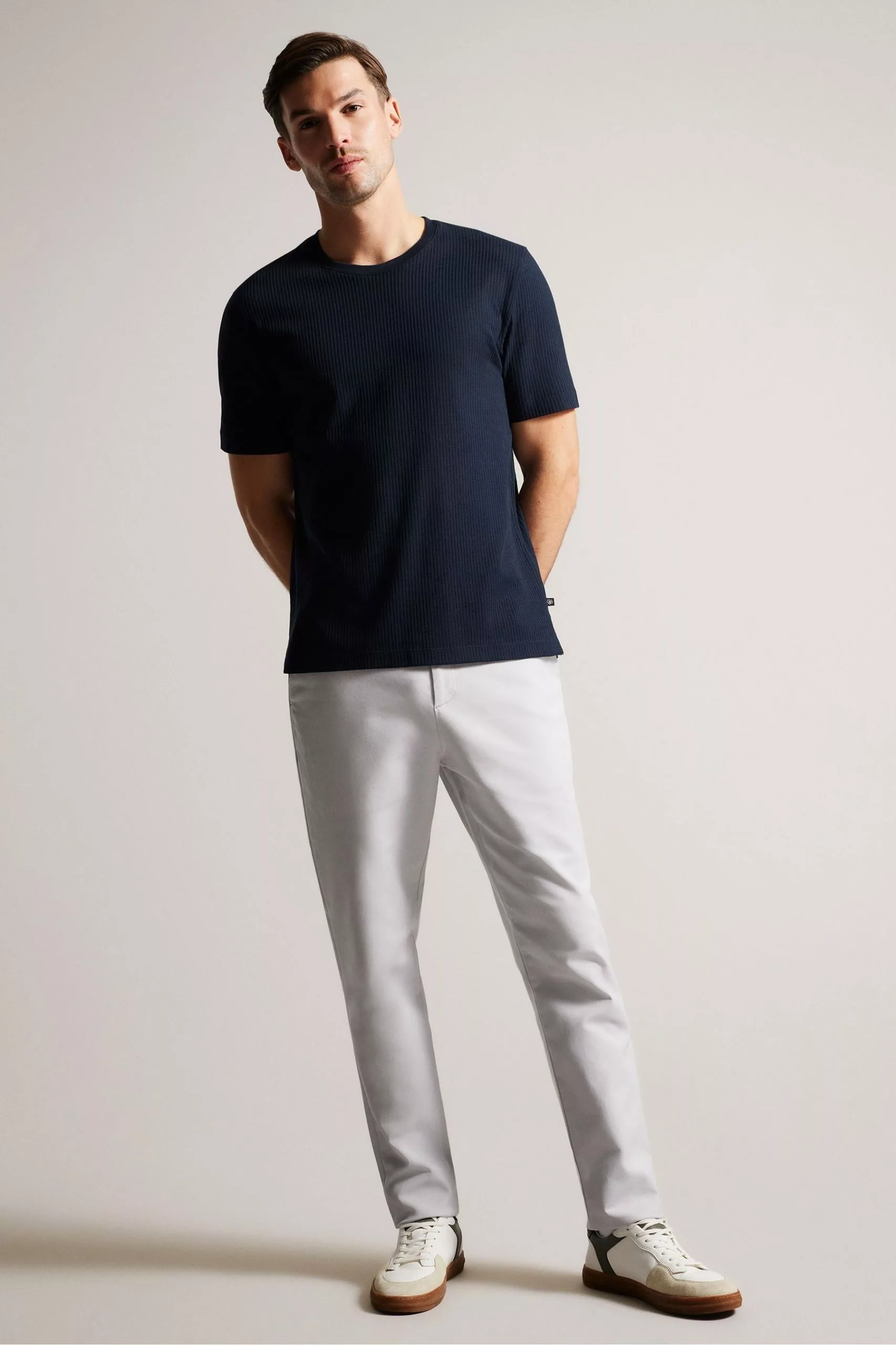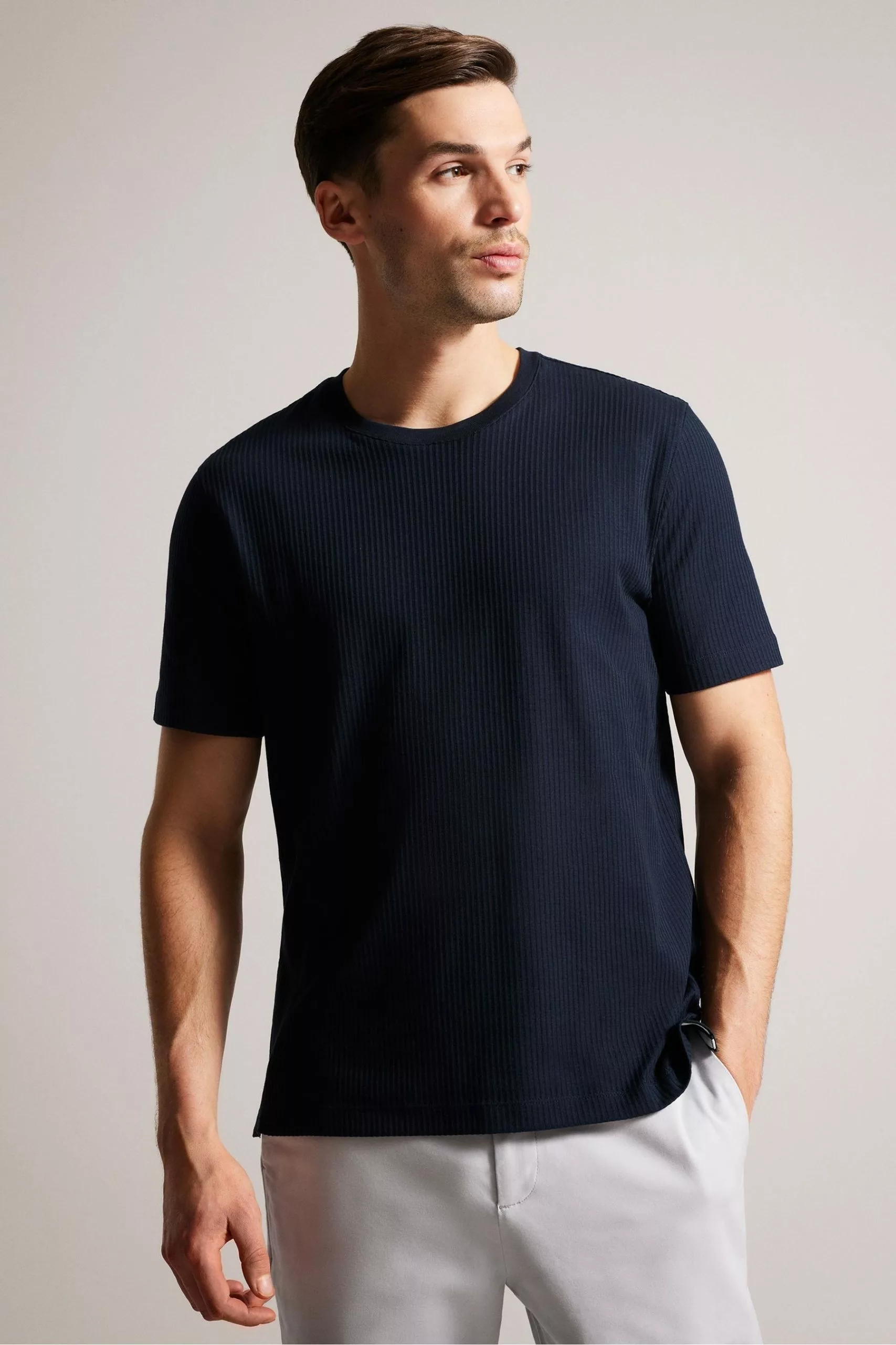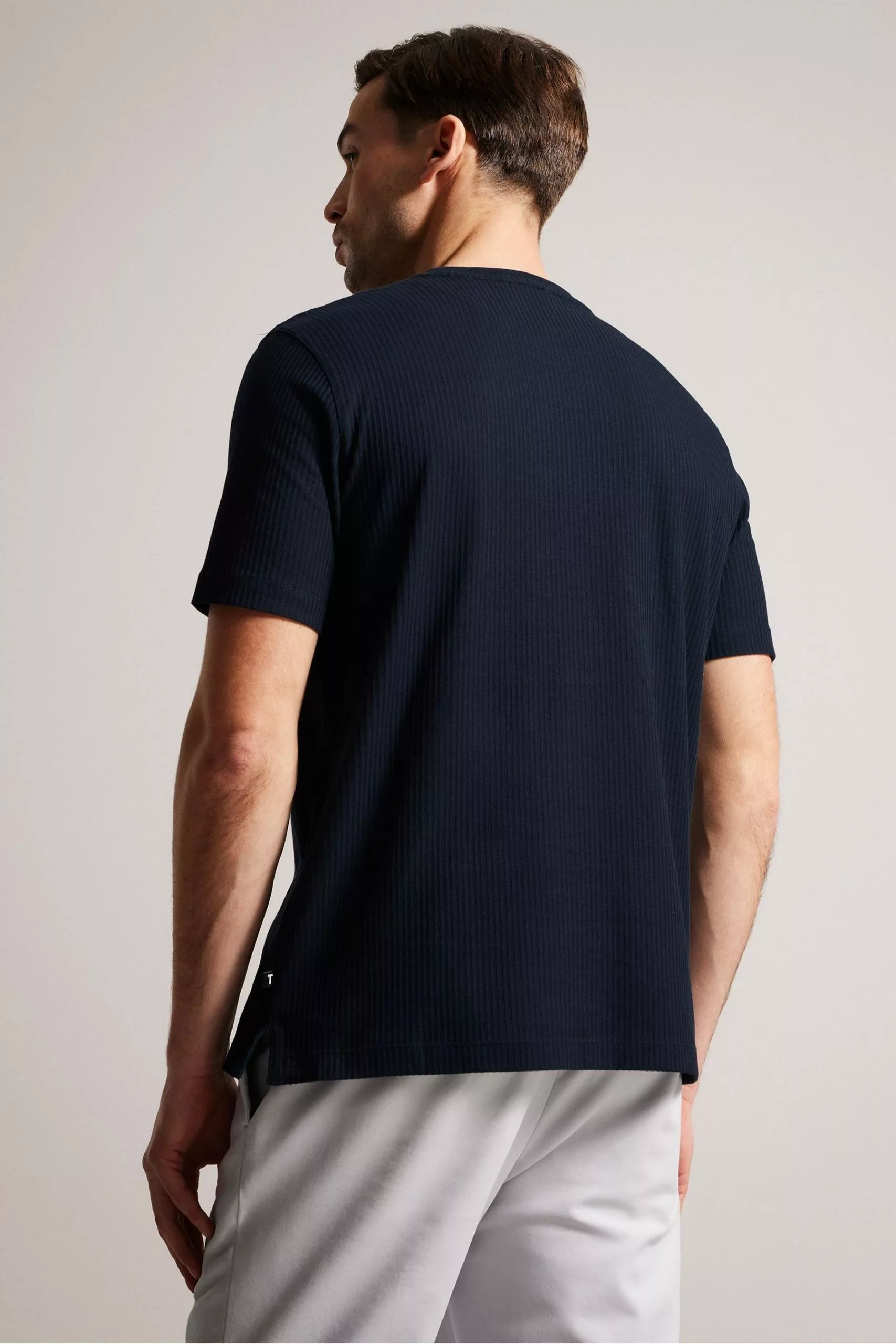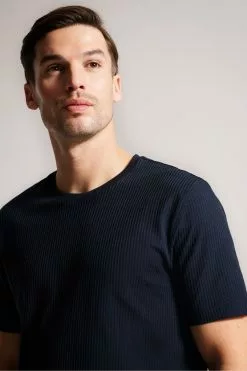 Easy does it. The essential RAKES tee is made of 100% cotton and has a striped texture that adds interest to this wardrobe staple.By choosing Ted Baker cotton products, you’re supporting our investment in the a Better Cotton Initiative mission. This product is sourced via a system of mass balance and therefore may not contain Better Cotton.