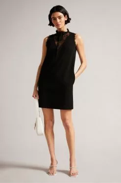 Be the first to review “Ted Baker Chharis Black Shift Dress With Lace Panels And Neck Tie” Cancel reply