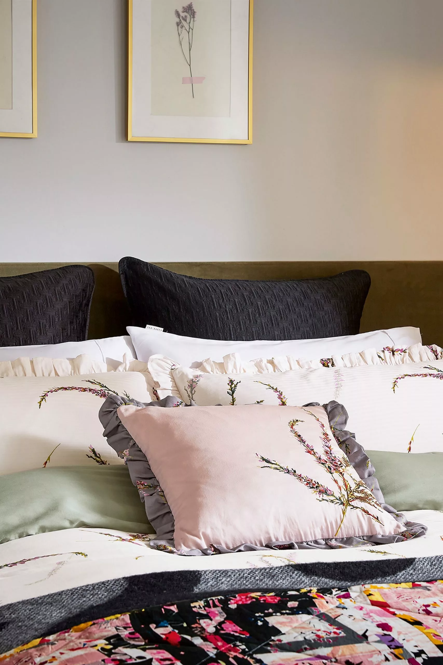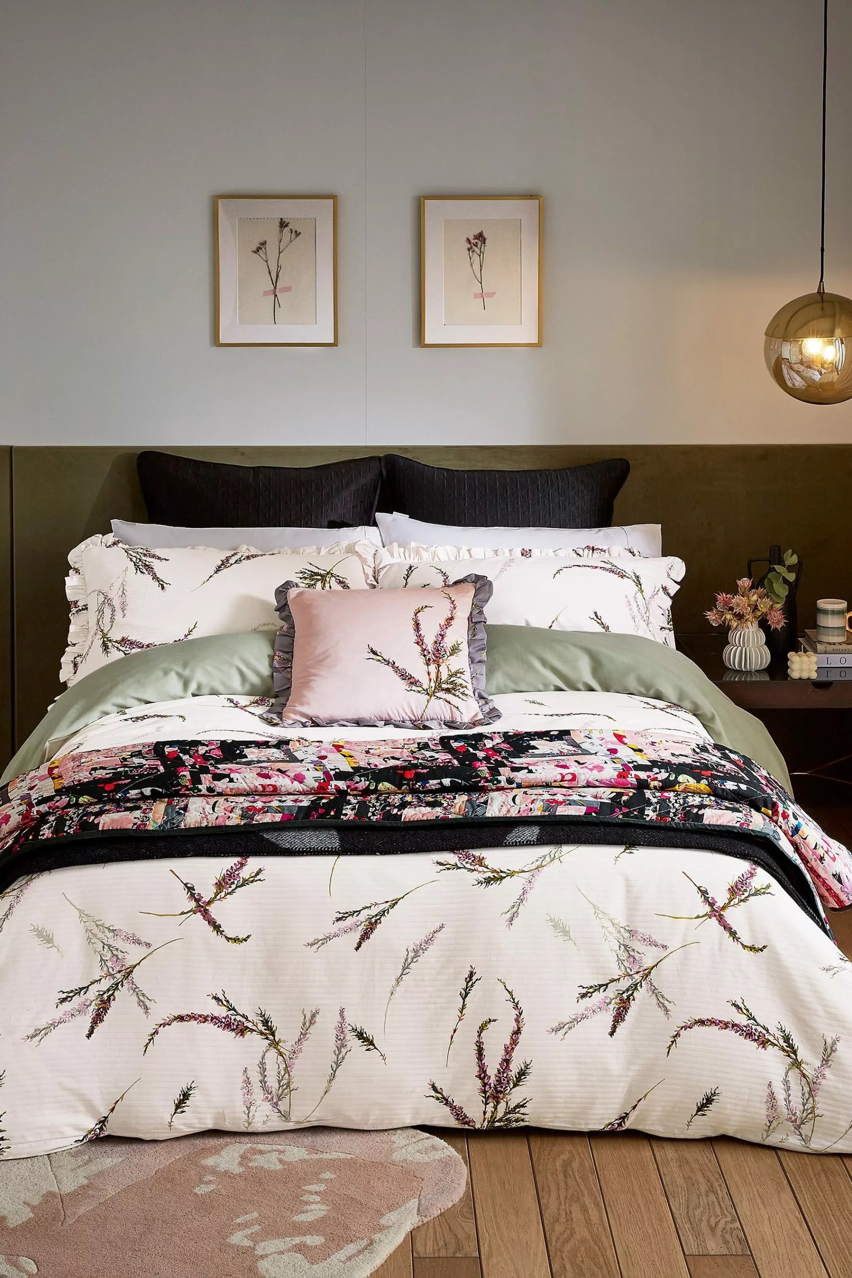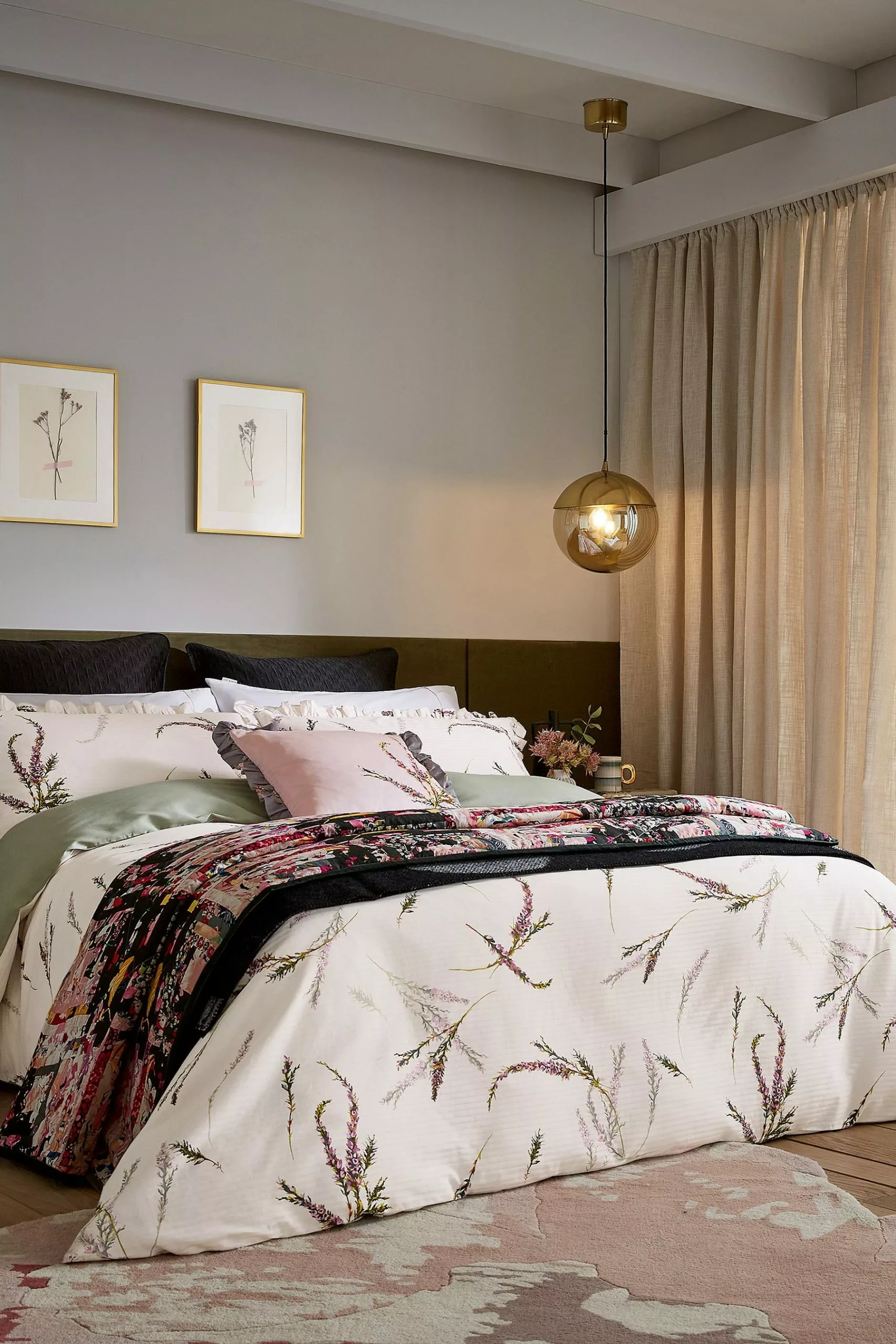 Wake up and smell the flowers with this modern take on a classic floral look. Sprigs of heather are scattered across a tranquil blush coloured ground and printed on a 200 thread count satin stripe to update with luxurious texture. Considered details include frilled edge pillowcases sold separately.