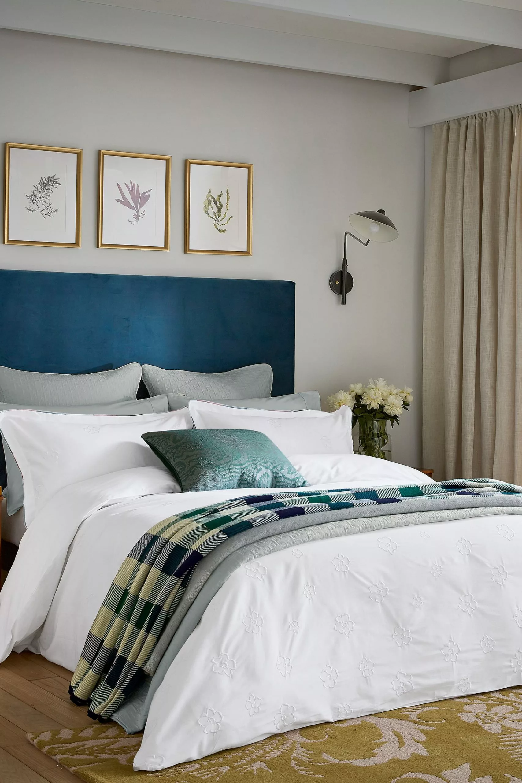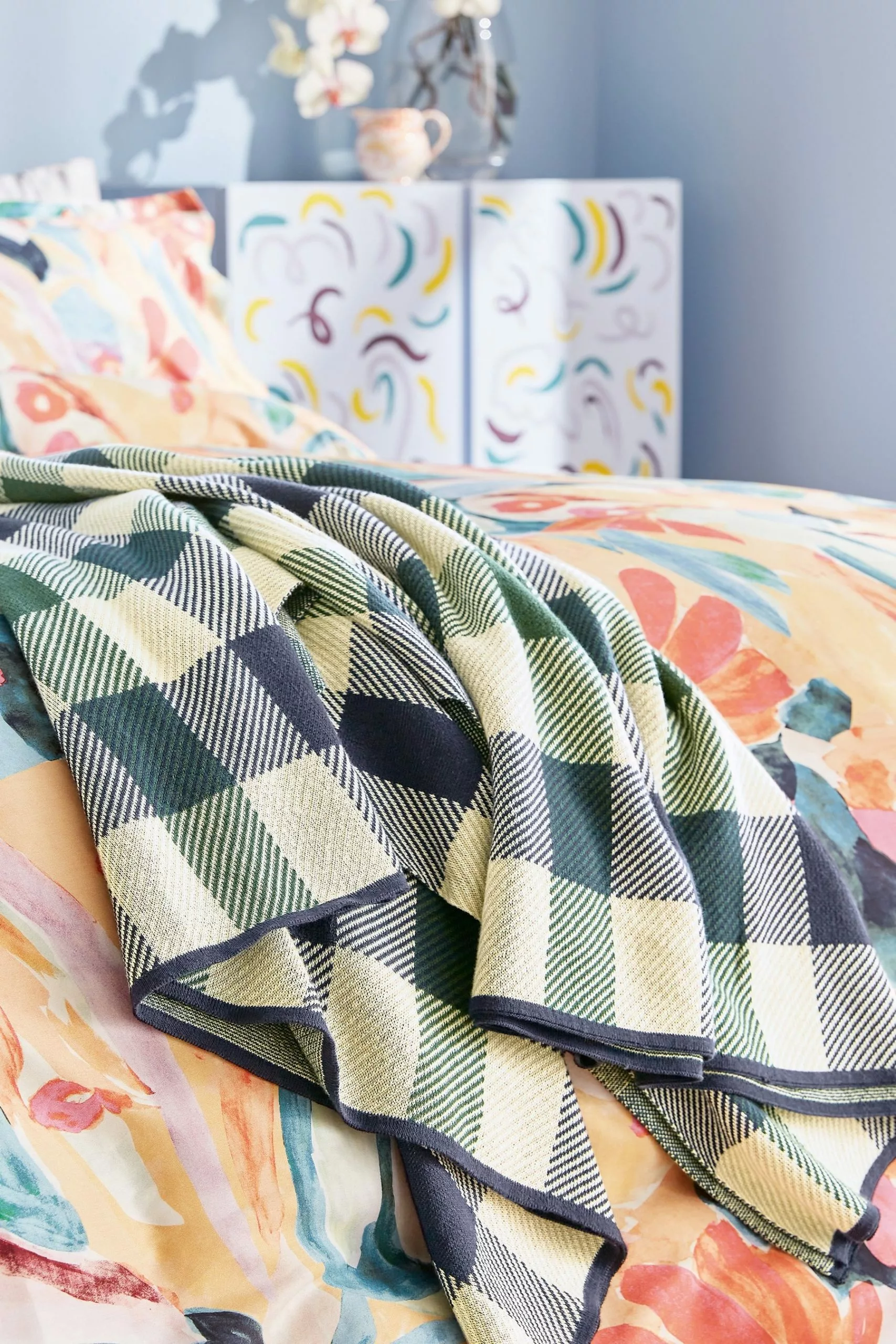The check knit throw offers a little graphic contrast. Featuring all over knitted check design with contrast navy hem.