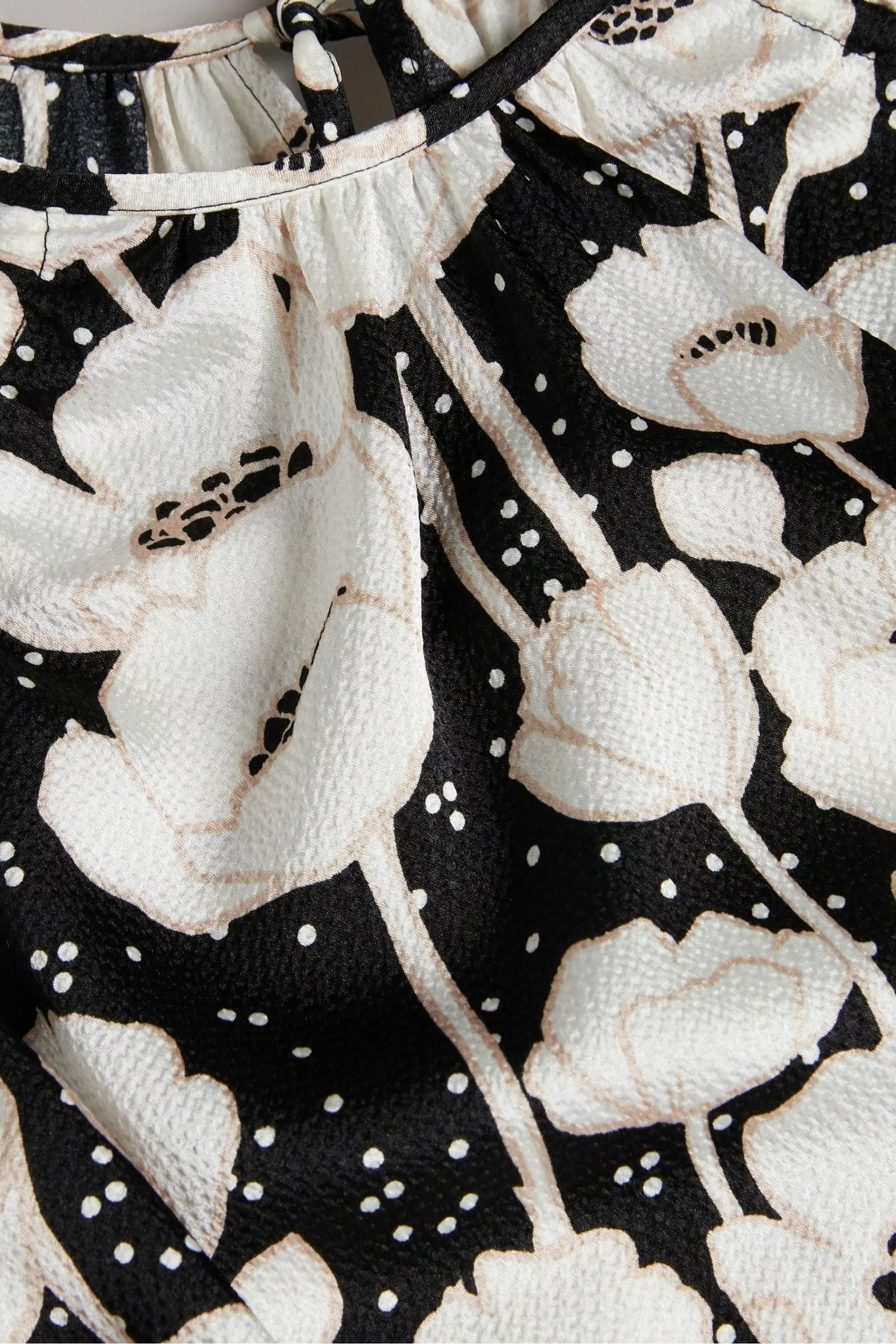 Lightweight and airy, LUCIANI is sure to appeal to your sense of style. With a fun poppy print and short, ruched sleeves, this boxy fit shirt will add a touch of playful flair to your everyday wardrobe.