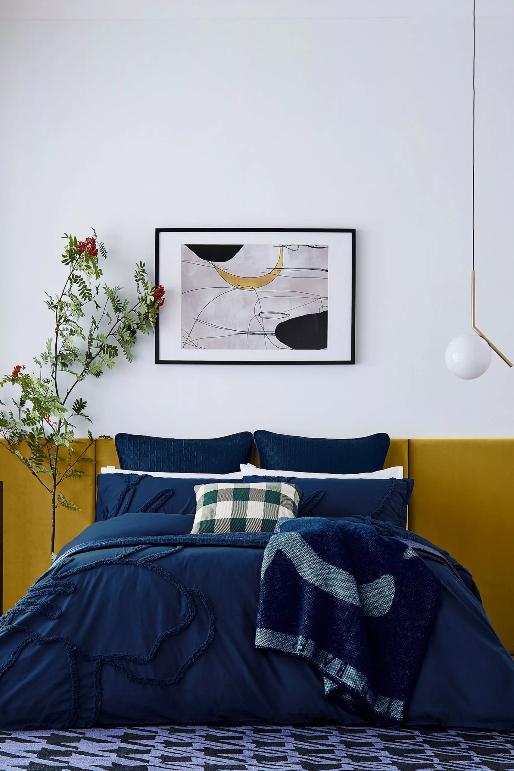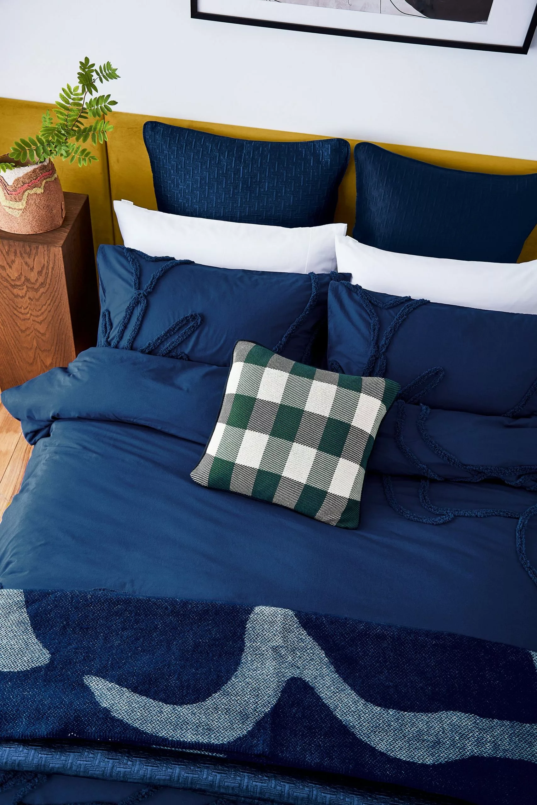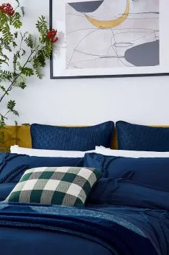 Add textured luxury to your bedroom with the tufted magnolia flower bedding design. The oversized embroidered detail with its natural washed finish is soft and inviting. Embrace your dark side with the navy colourway which is new for SS 23.