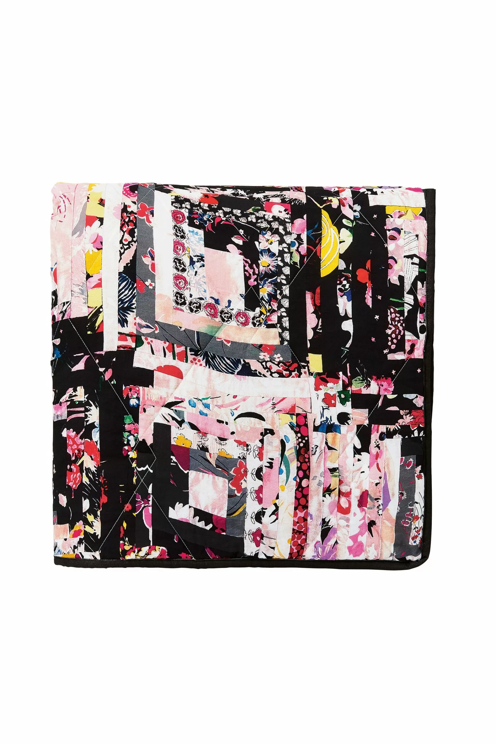 A digitally printed patchwork design to the front of this throw is quilted in a large diamond pattern. Reverse in contrast plain dyed black. 100% BCI Cotton Sateen.