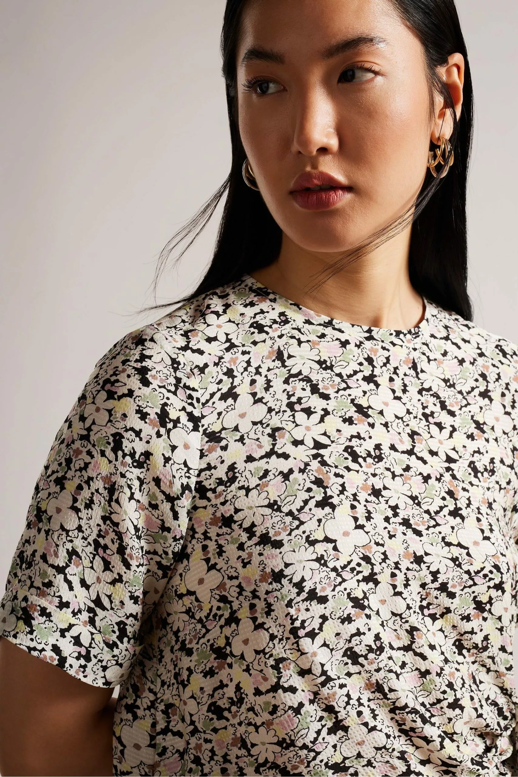 Get your floral fix with this boxy crew neck tee. Featuring a ditsy floral print and keyhole back cut-out, CHEVY ties at the side for a flattering fit. Wear yours with denim jeans and boots for an effortlessly cool outfit that’s perfect for coffee dates and exploring the city.