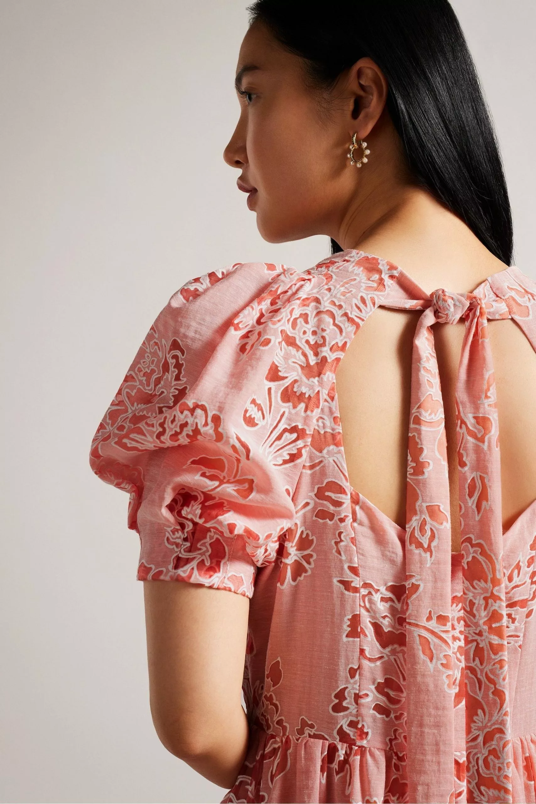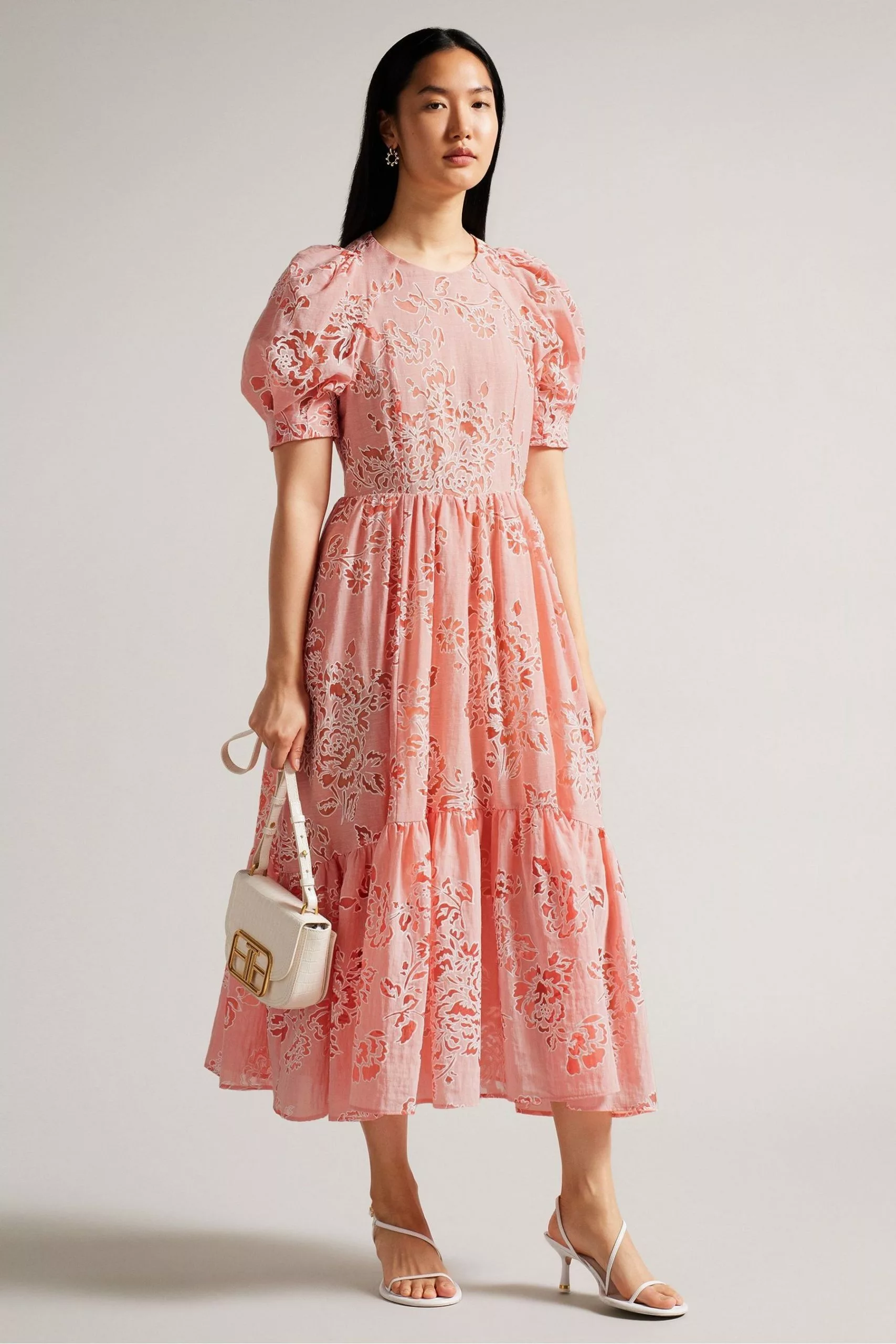 Be the first to review “Ted Baker Pink Esthher Coral Puff Sleeve Tiered Midi Dress” Cancel reply