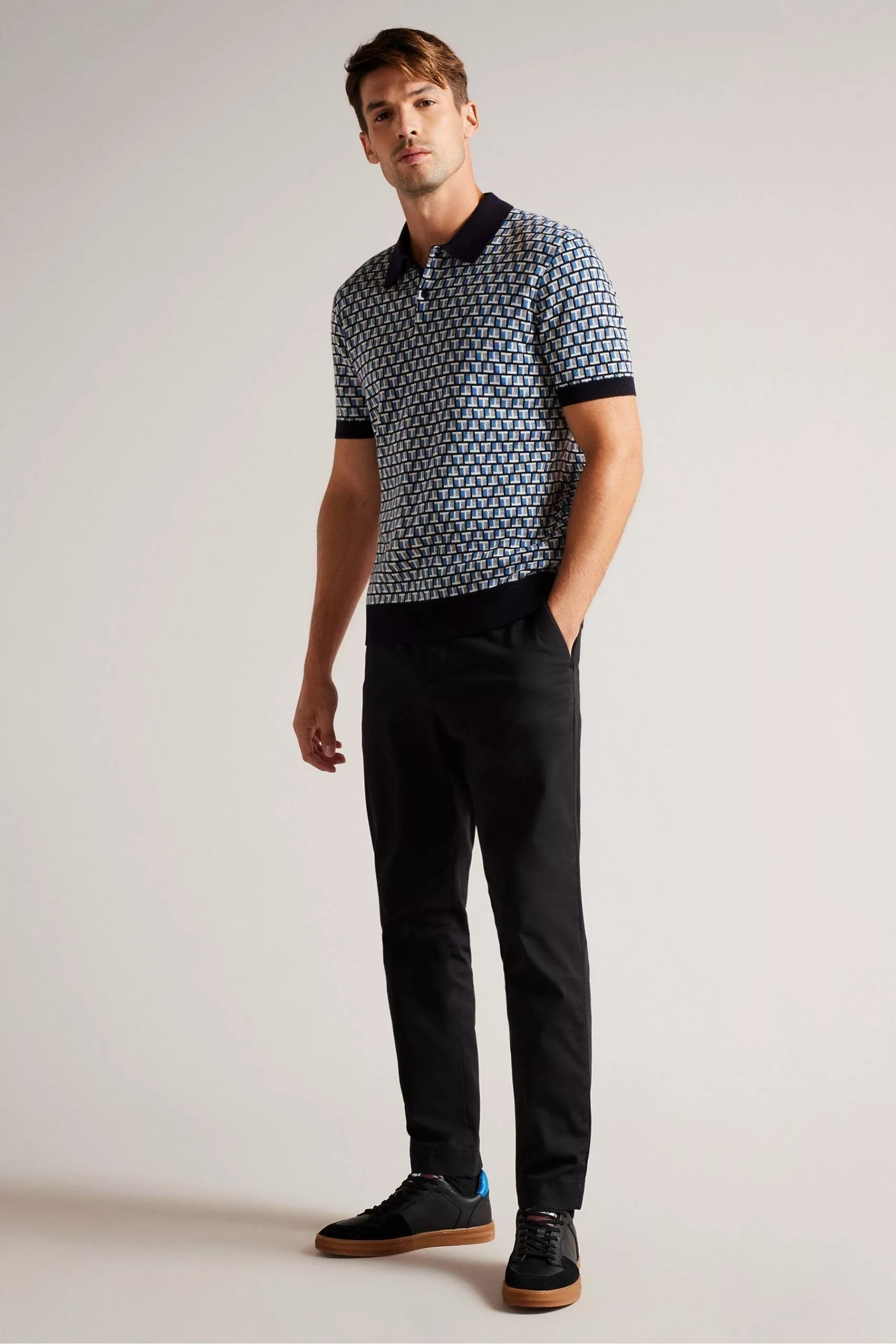 Be the first to review “Ted Baker Regular Blue Badenn Jacquard Knitted Polo Shirt” Cancel reply