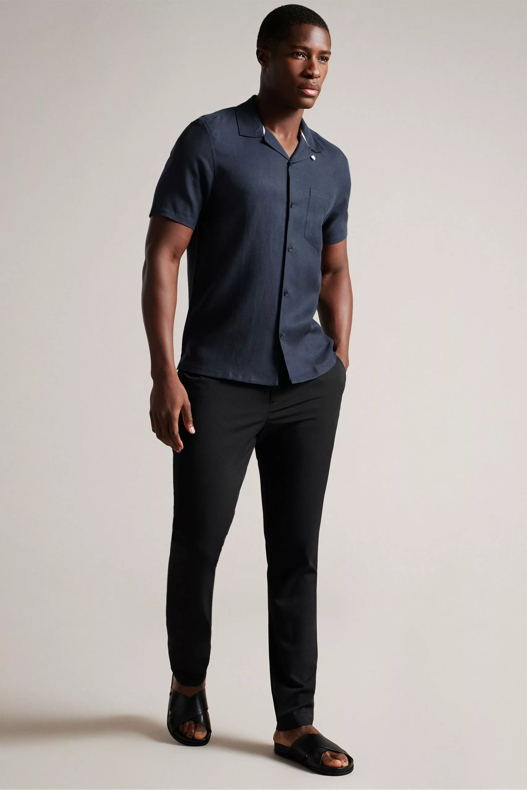 Be the first to review “Ted Baker Wesland Navy Blue Short Sleeved Linen Blend Revera Shirt” Cancel reply