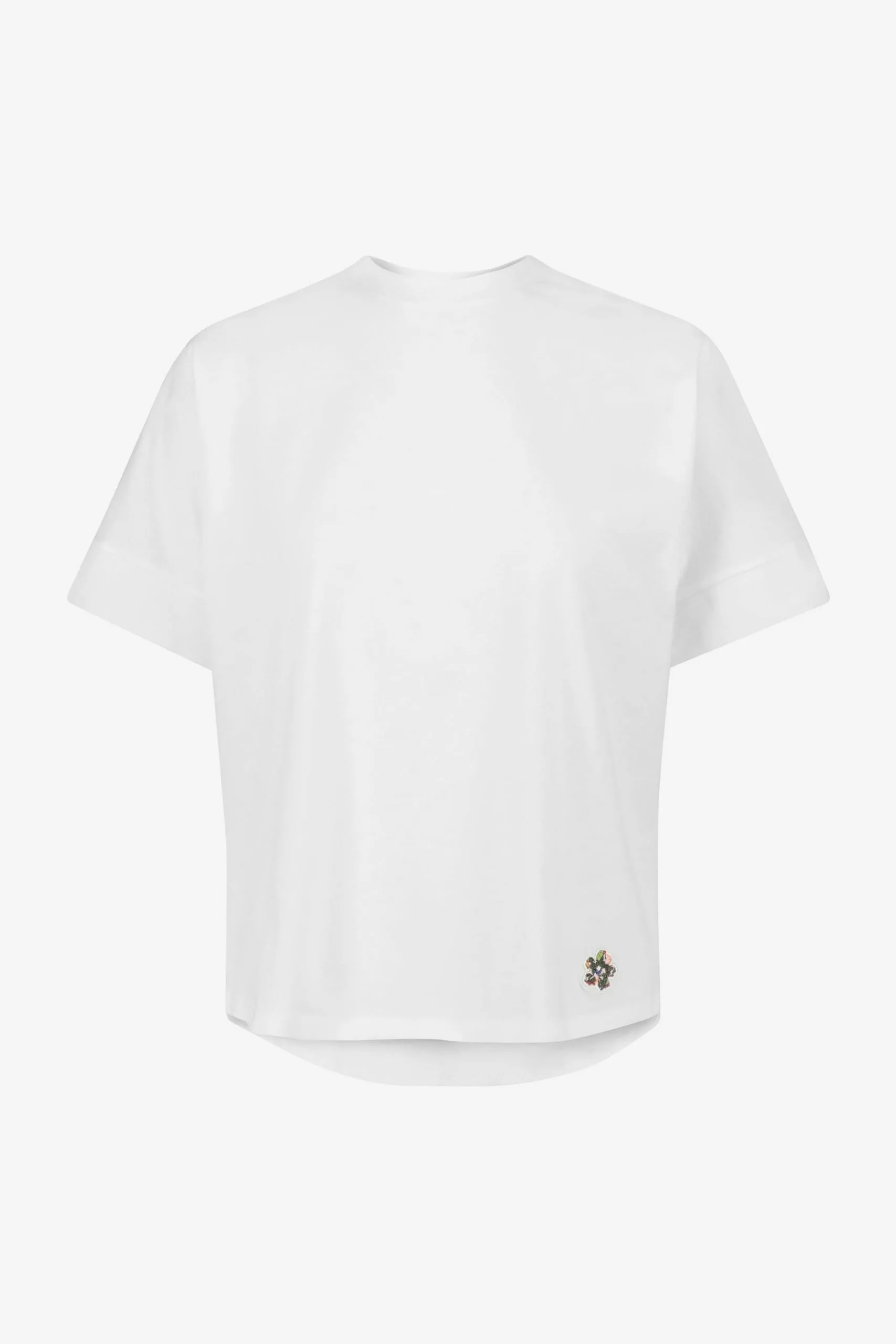 We take your plain t-shirt and raise you, ERISANA. This relaxed tee will be your go-to when you need to be comfortable yet on-trend. Adorned by our sweet yet subtle Magnolia embroidered patch, it elevates this classic to new heights. Made from 100% organic cotton and with a rounded hem, this contemporary fit tee will look as impactful over a mini skirt as it will over slim jeans. But, we ll leave that up to you.