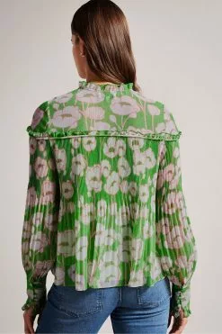Ted Baker Genini Glitsy Black Long Sleeve Top With Gathering